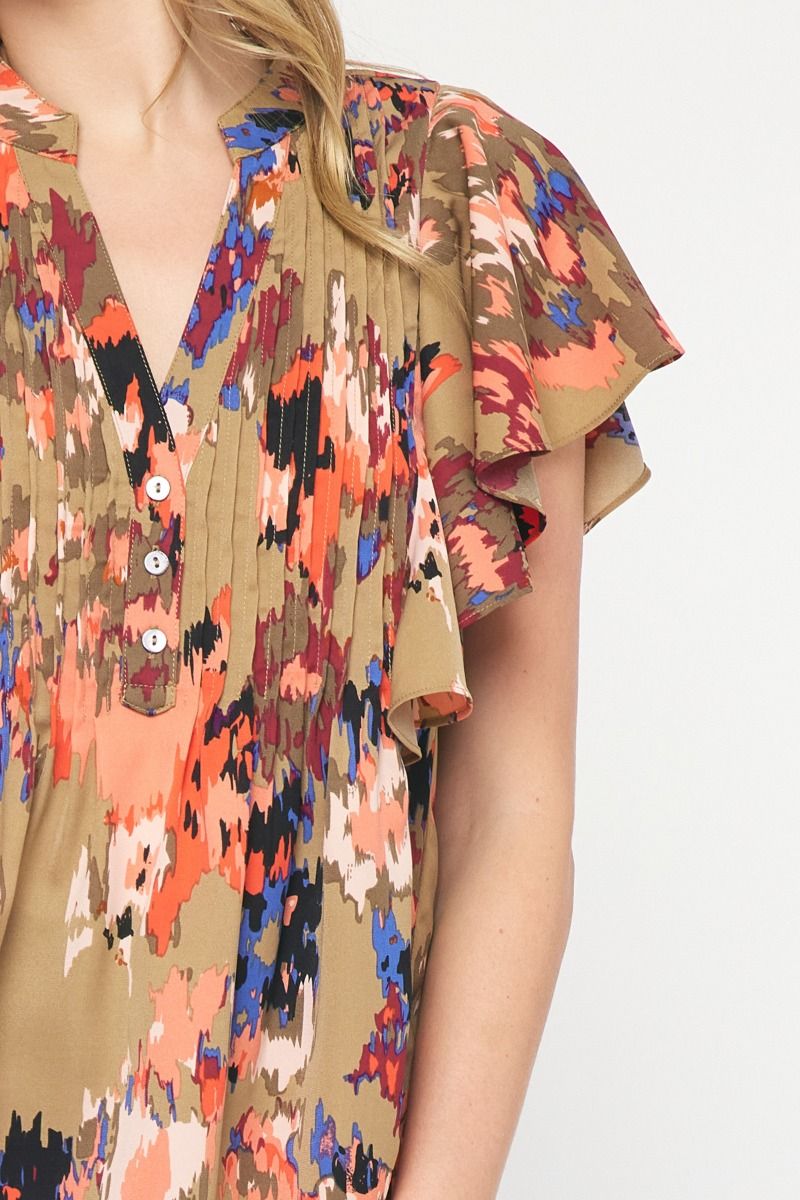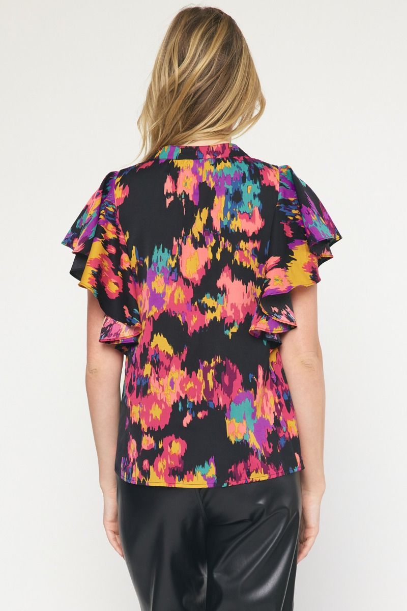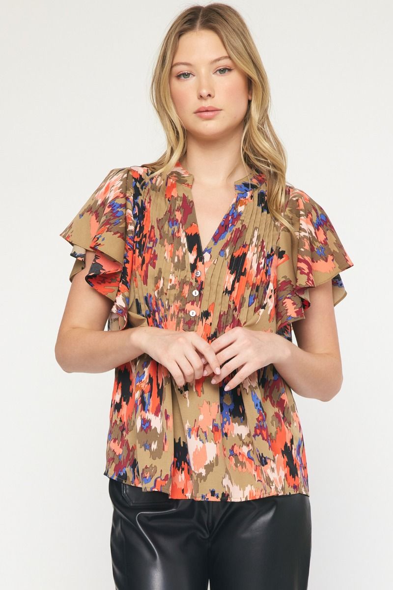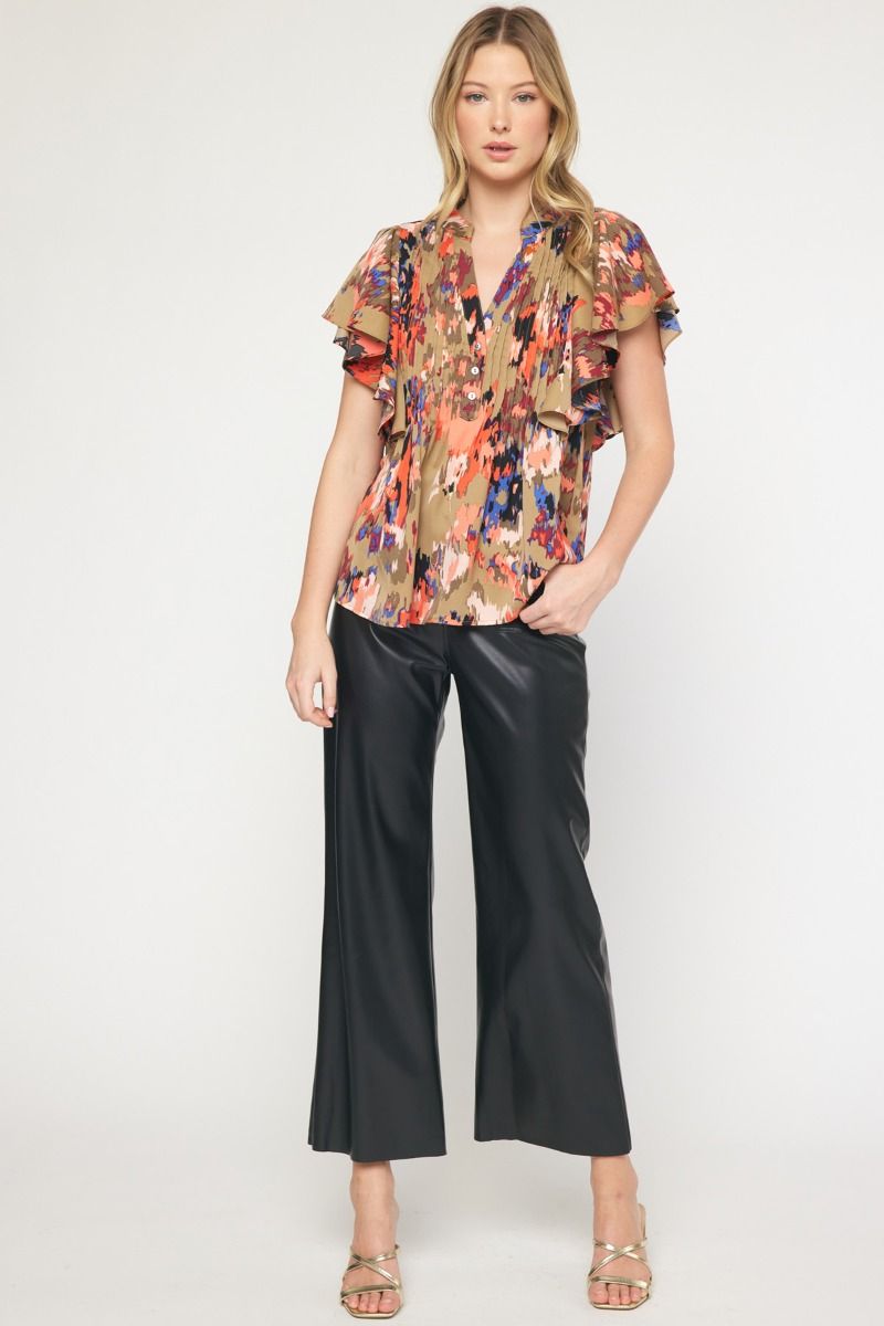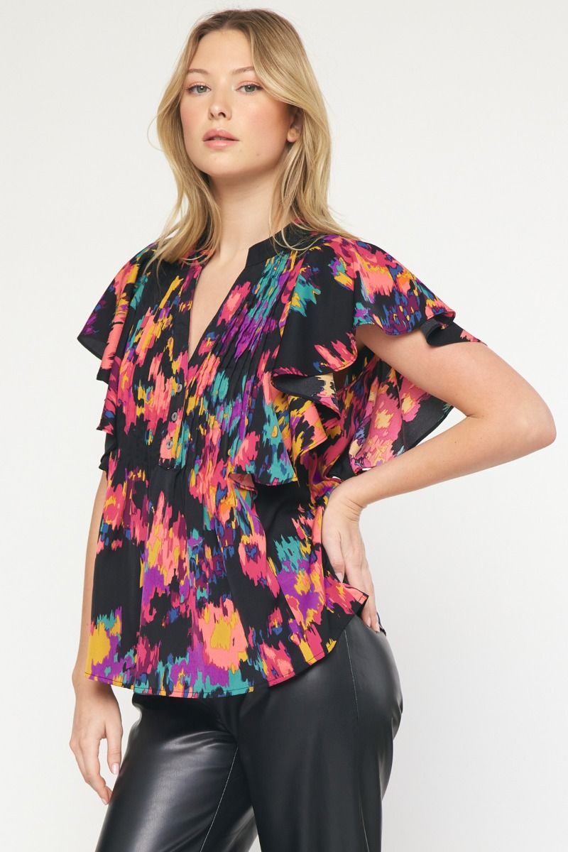 The Eye Kat Pleated Front Ruffle Sleeve Top