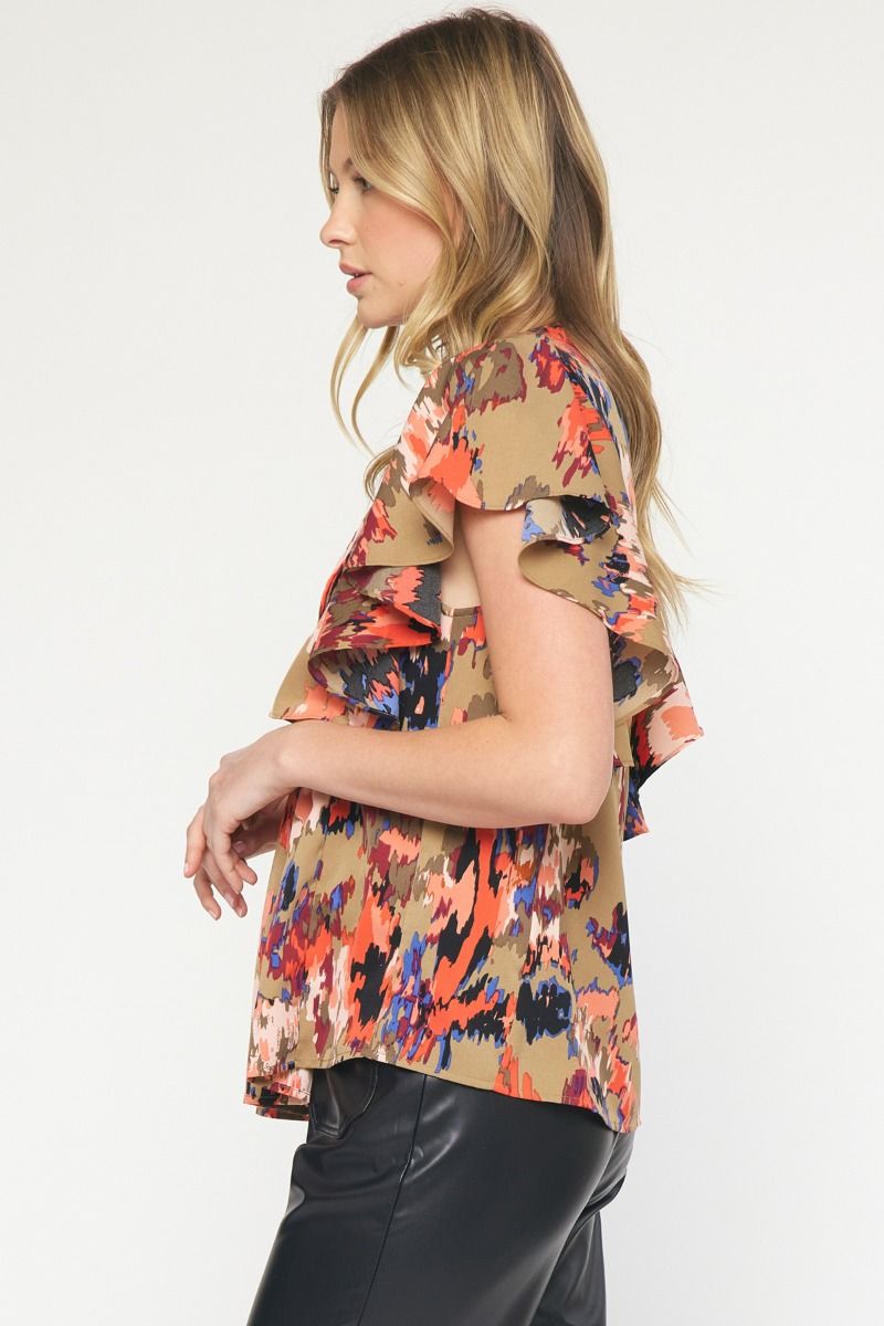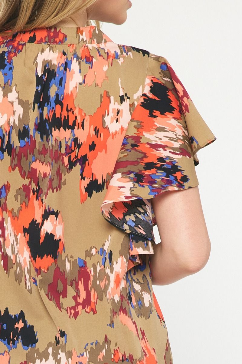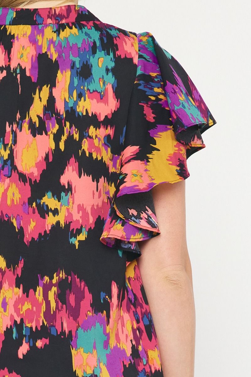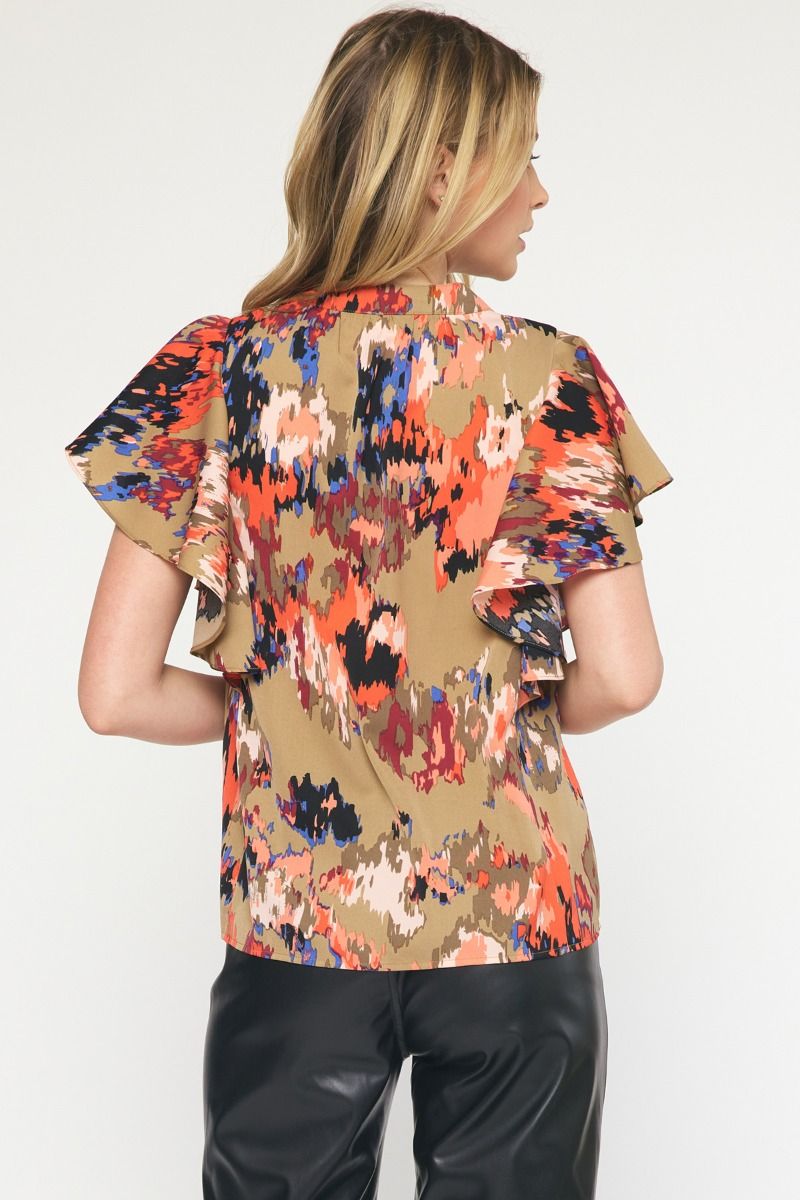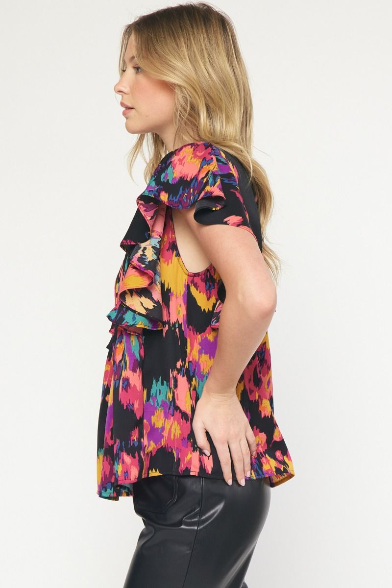 The Eye Kat Pleated Front Ruffle Sleeve Top