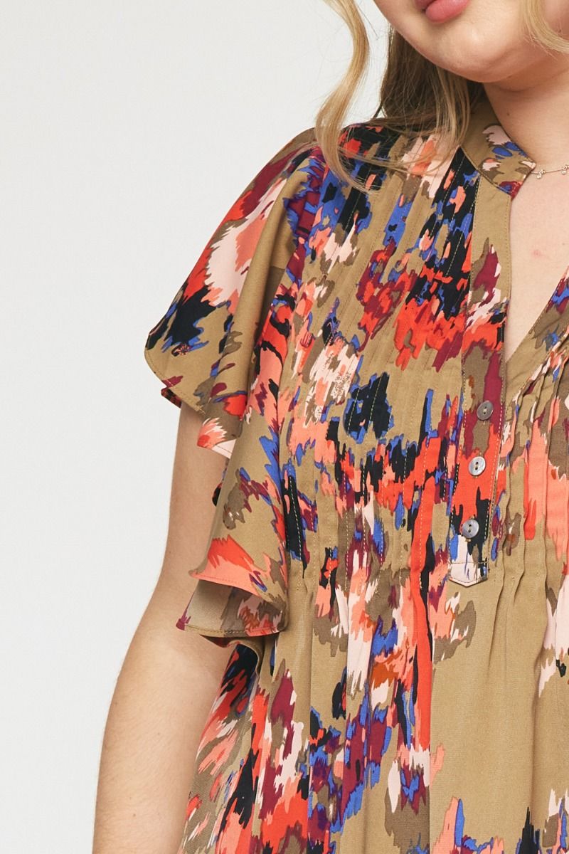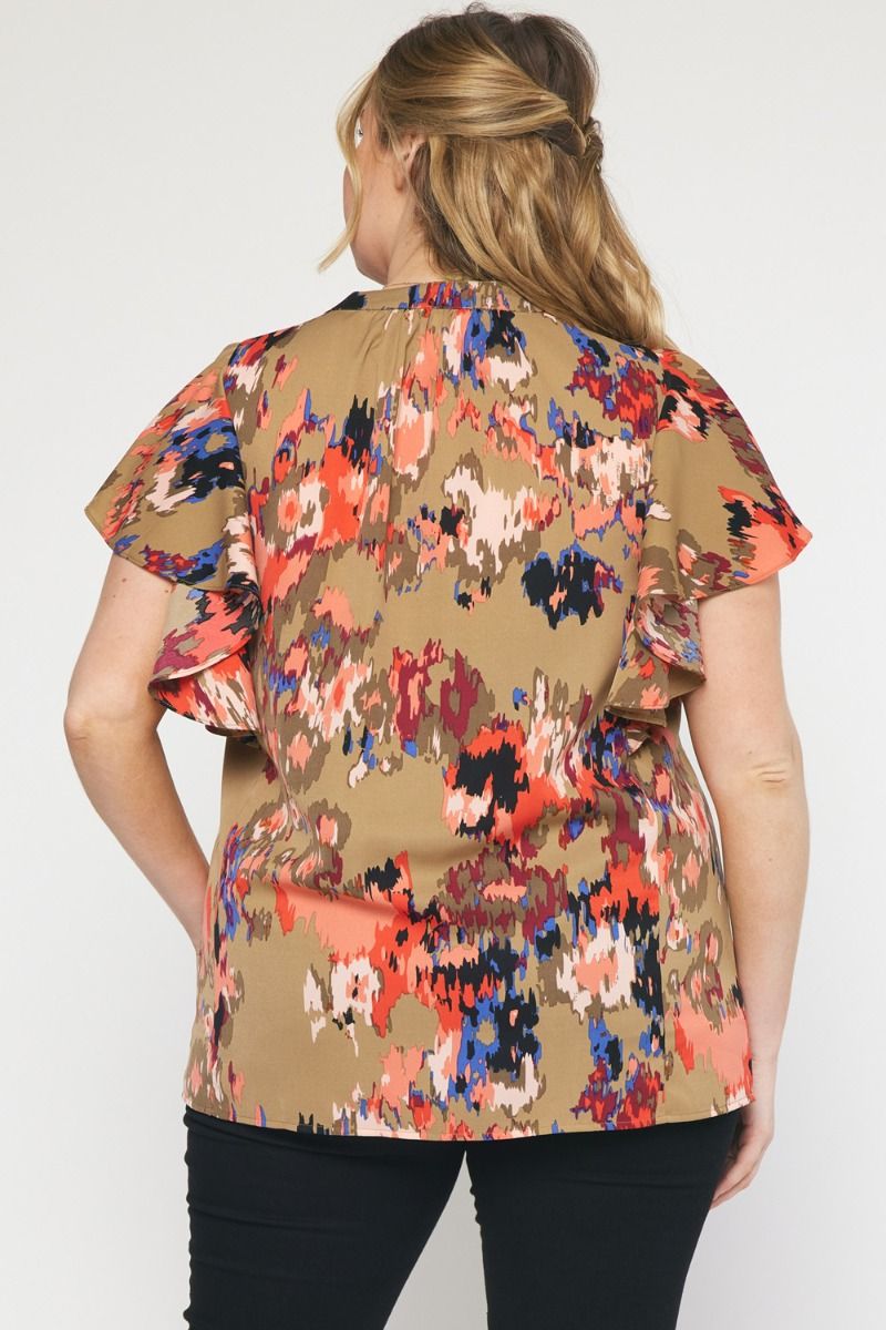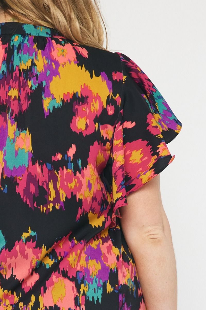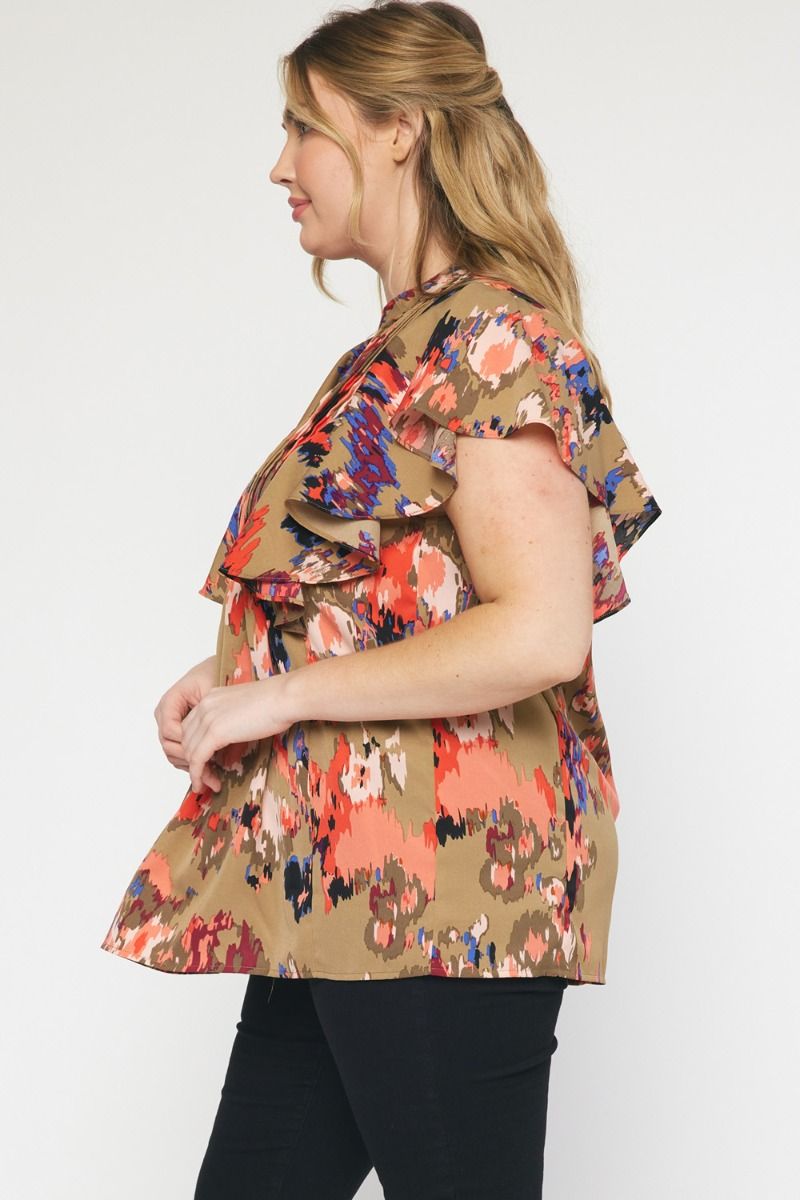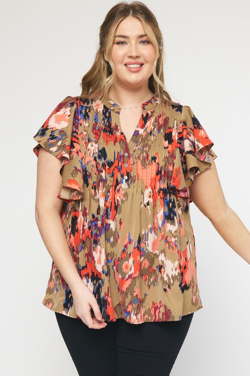 The Eye Kat Pleated Front Ruffle Sleeve Top Curve +