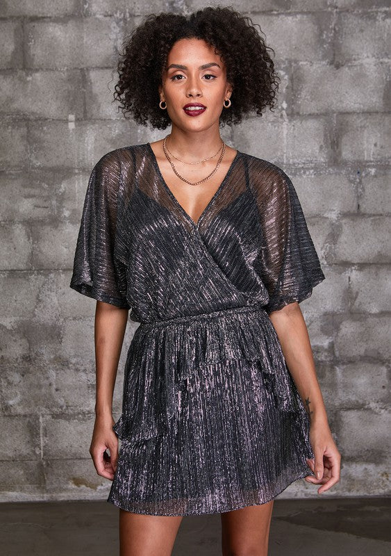 Experience glitz and glamour in our Blythe Metallic Disco Dress. Made with stunning metallic fabric, this dress will make you shine and stand out on any night out. A must-have for those who want to make a statement.