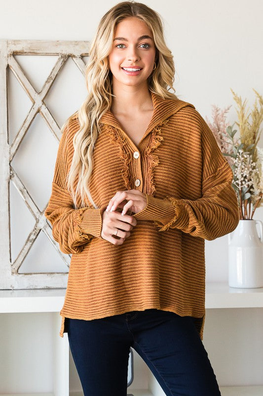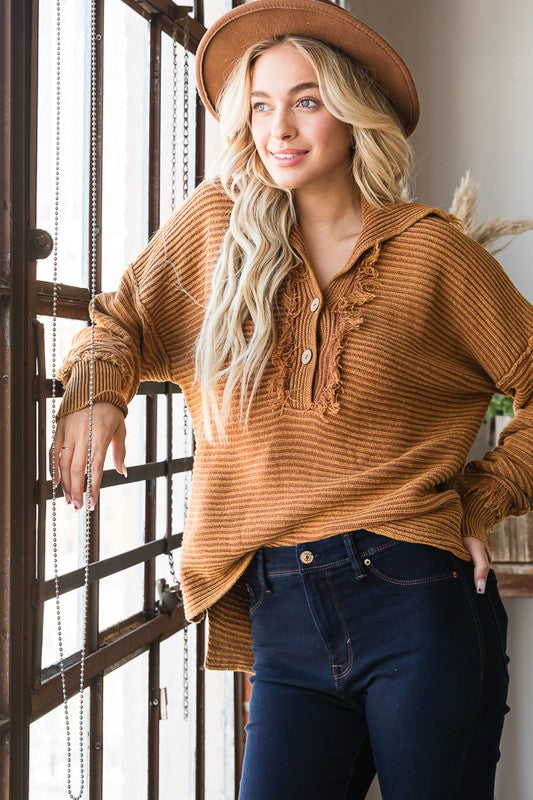 Unleash your inner fashion rebel with The Heathrington Fray Henley Sweater. This trendy sweater features a unique fray design and classic henley style, making it a must-have for any stylish individual. Stay cozy and stylish at the same time with this one-of-a-kind sweater.