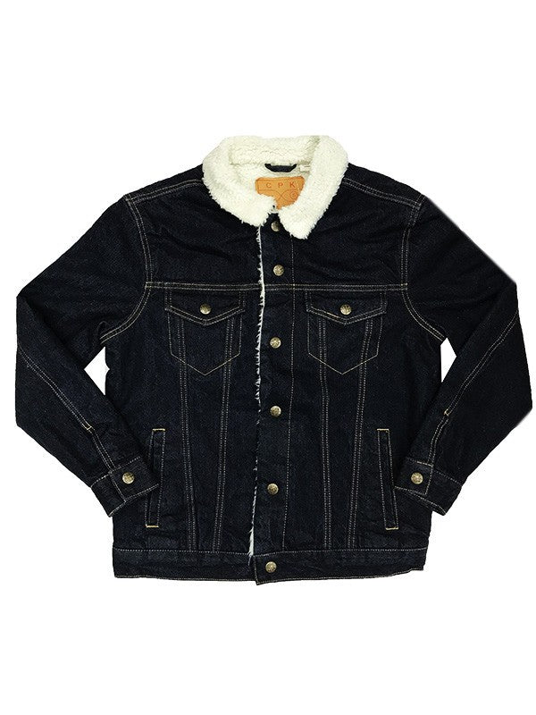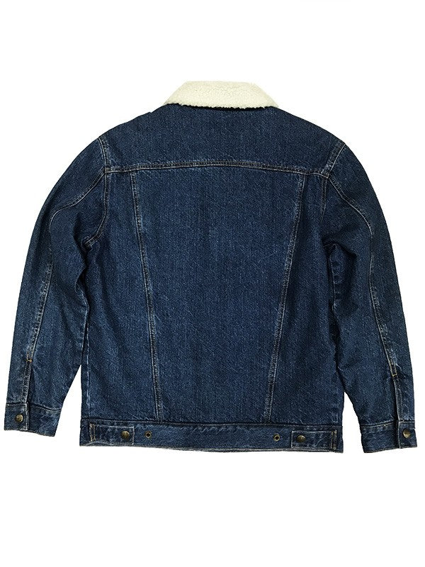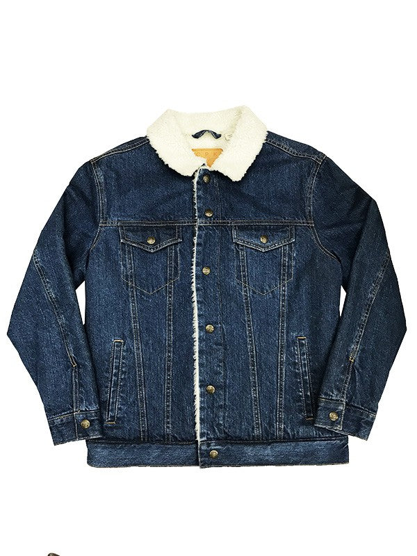 Elevate your style with the Laramie Men's Ranch Jacket. This luxurious denim jacket features a cozy sherpa lining, perfect for the colder months. Stay warm while looking effortlessly stylish. Perfect for any man's wardrobe.