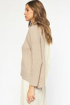Elevate your style with The Mantle Kat Colorblock Turtleneck! This cozy, neutral sweater features a chic turtle neck and trendy color block design.