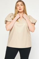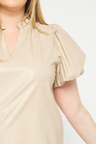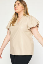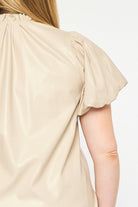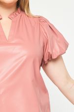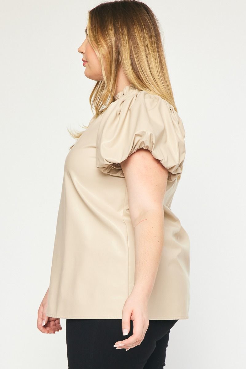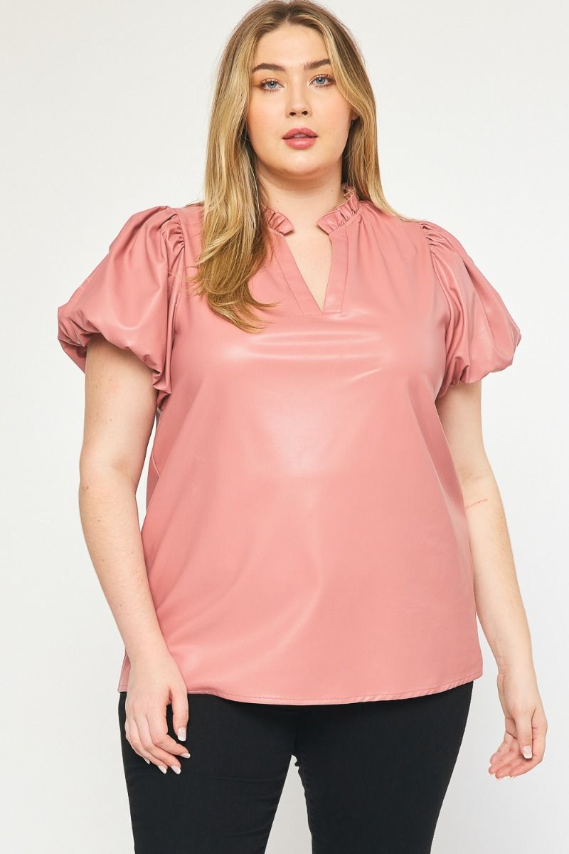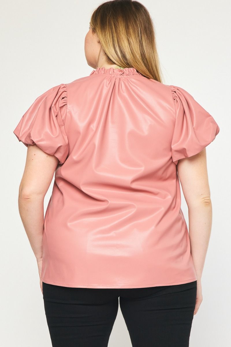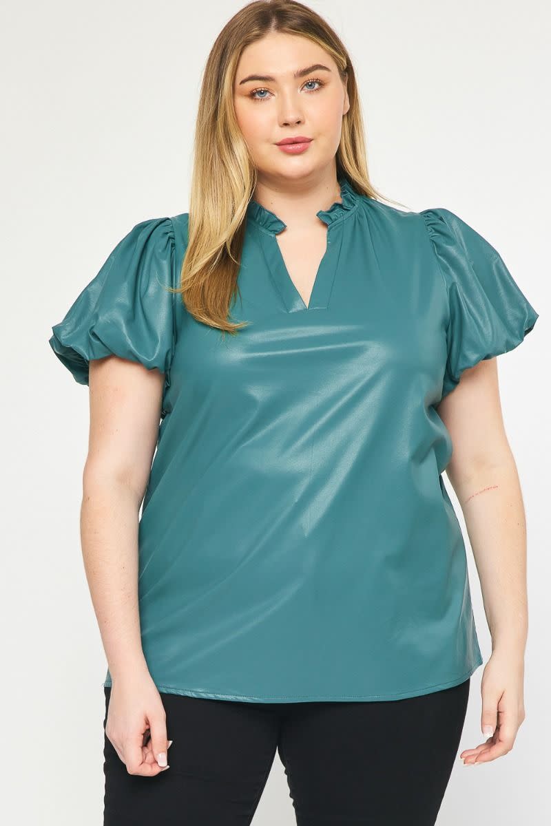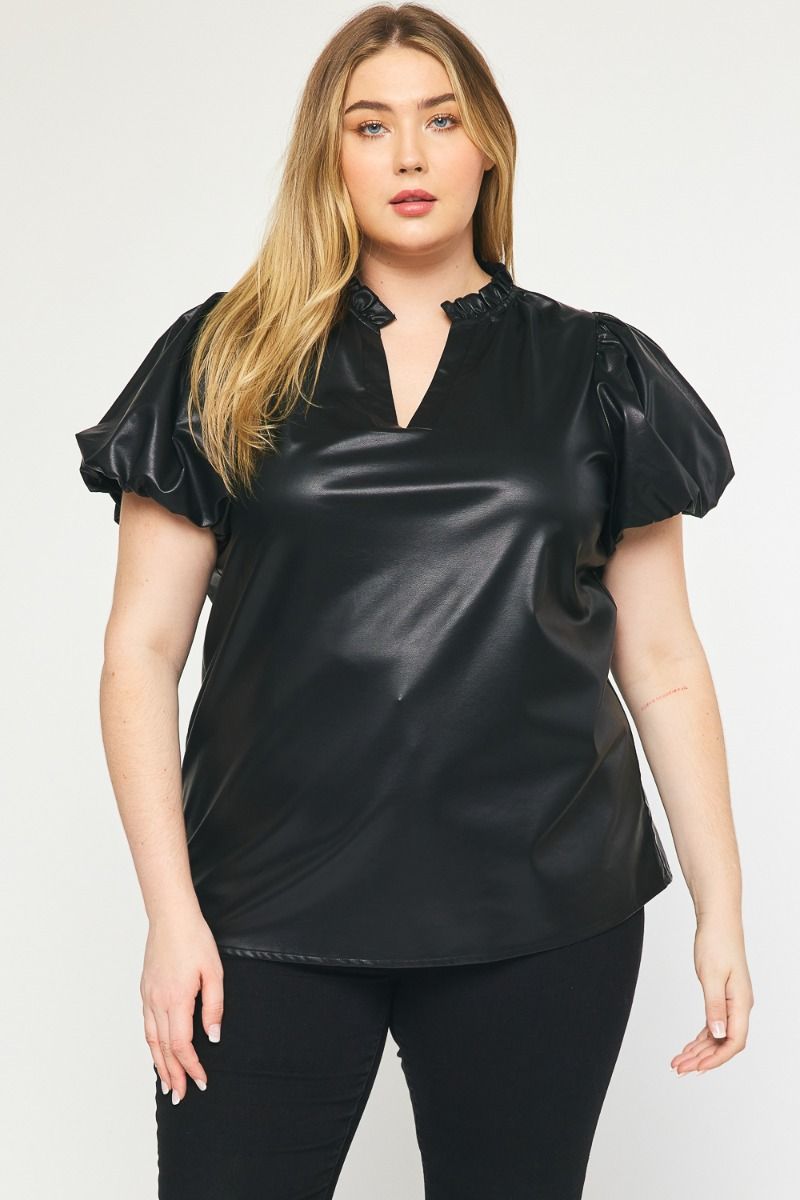 The Payne Kat Faux Leather Ruffle Sleeve Top Curve +