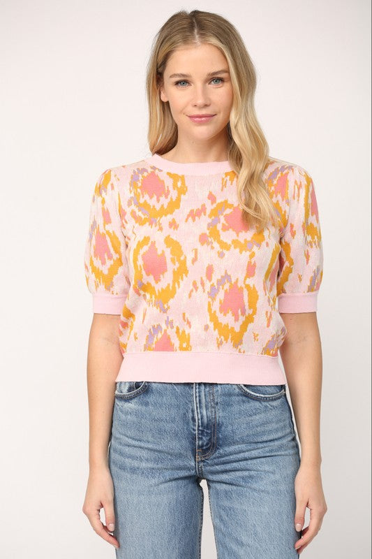 Upgrade your wardrobe with the Eye Kat Multicolored Short Puff Sleeve Sweater. Featuring a trendy multicolor print and short puff sleeves.