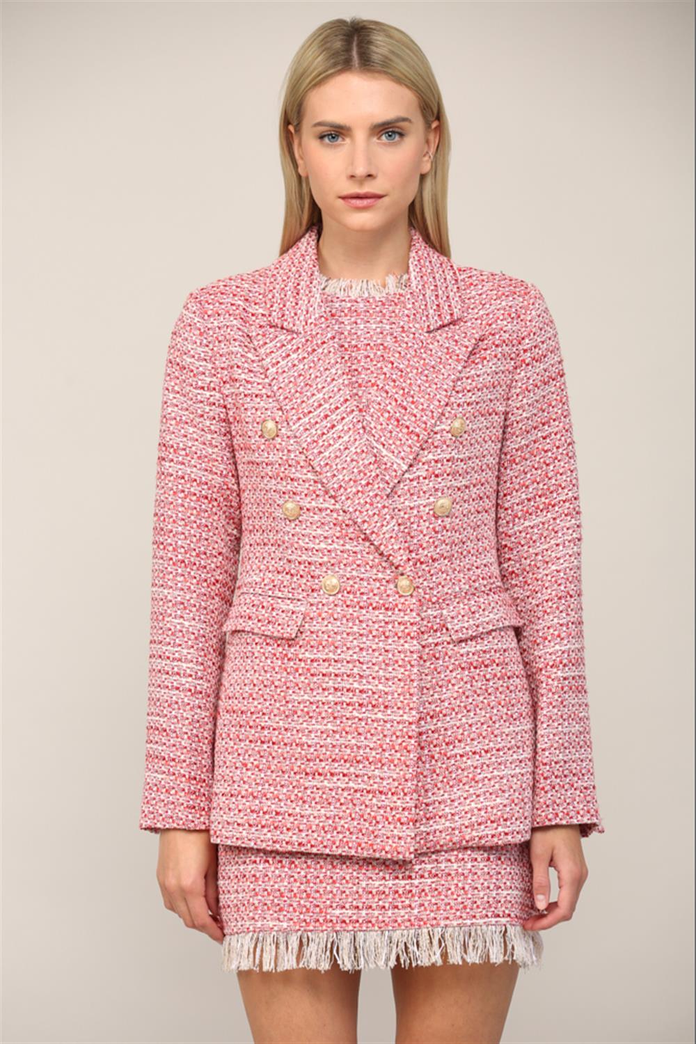 Elevate your style with The Lucca Kat LUXE Tweed Blazer. Made from lustrous LUREX TWEED, this double-breasted blazer will add a touch of luxury to any outfit. Its timeless design will make you stand out in any crowd. Don't settle for ordinary, embrace the elegance and sophistication of the Lucca Kat blazer!