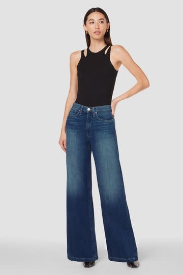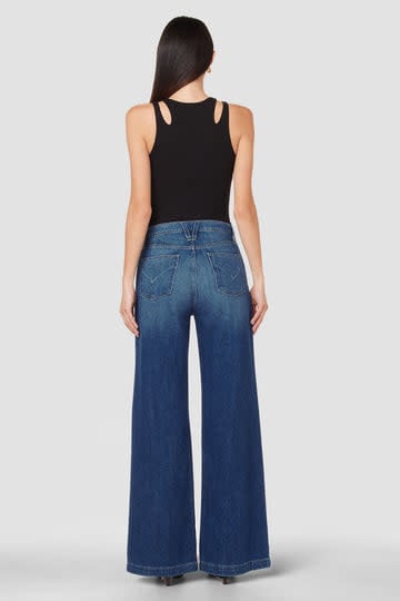 SIZE DOWN. These are one of my favorite pairs of denim that we have ever carried. The way I like them to fit I typically size down once if you're thicker through your mid section and twice if you're slimmer in your waist! They fit tight until right under your but and then release into this wide leg stove pipe leg. They are the best with an incredible band tee or even a cute crop!