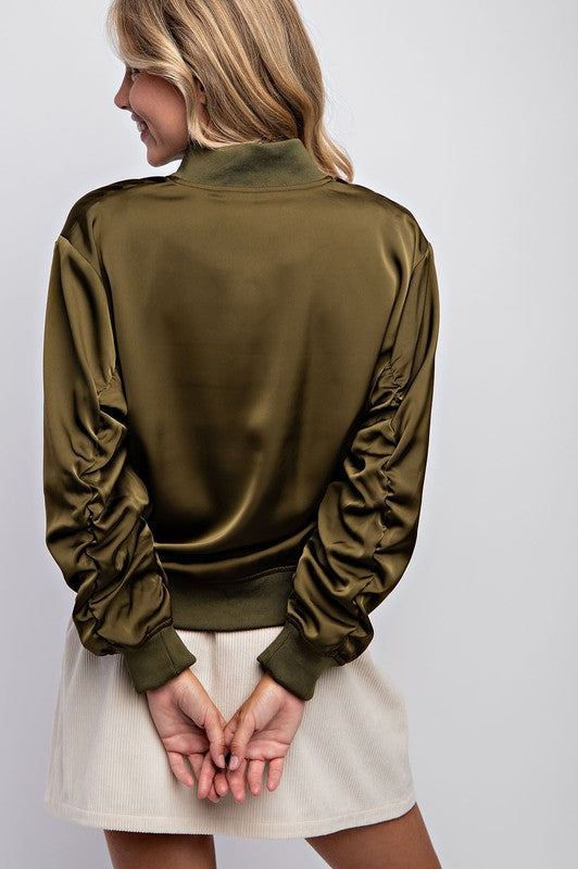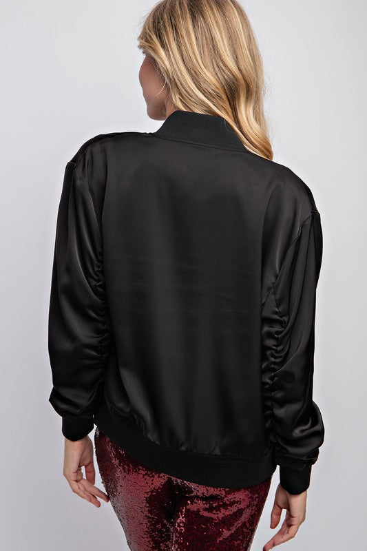 Wrap yourself in style with The Garrett Kat Satin Bomber.