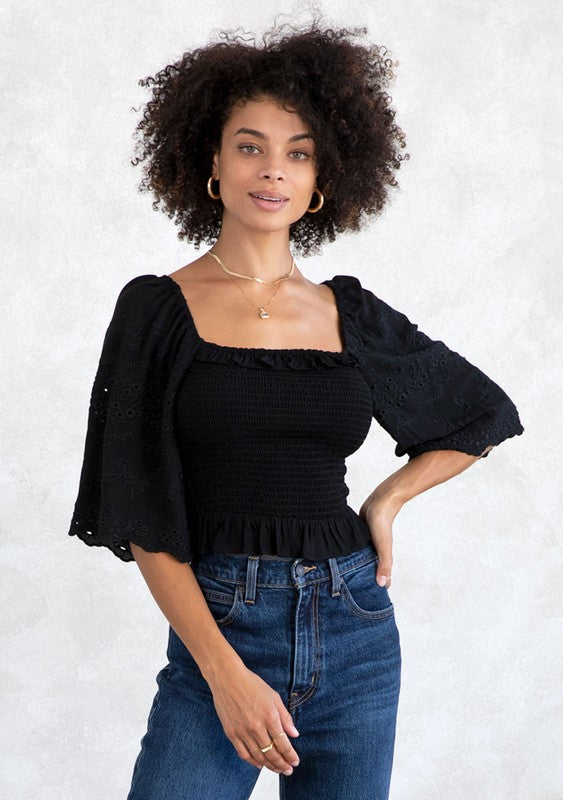 The Gauge Smocked Eyelit Crop