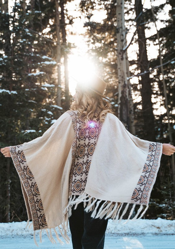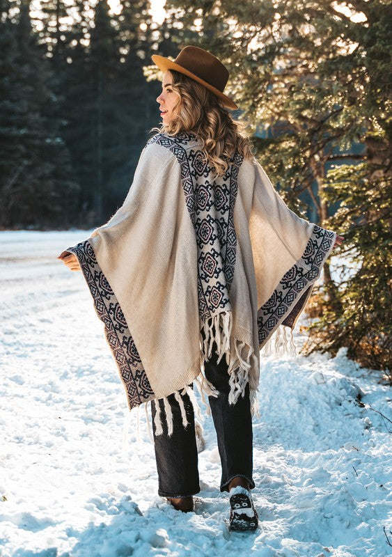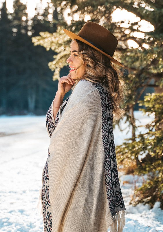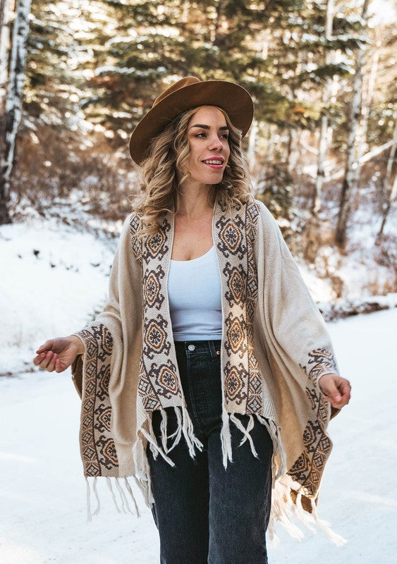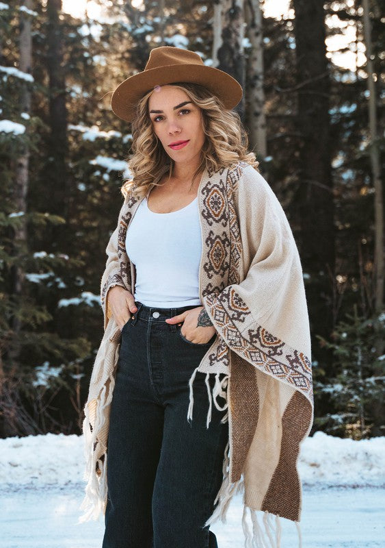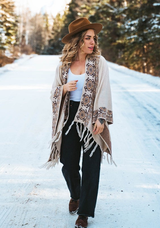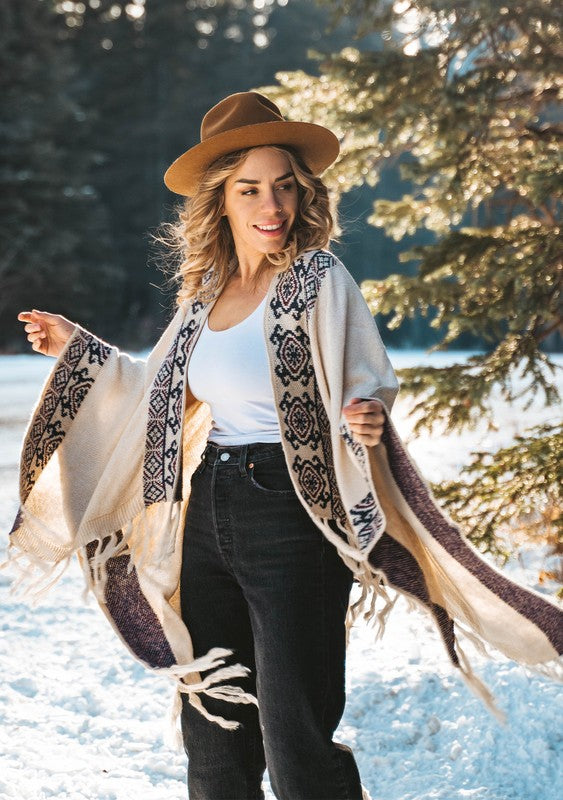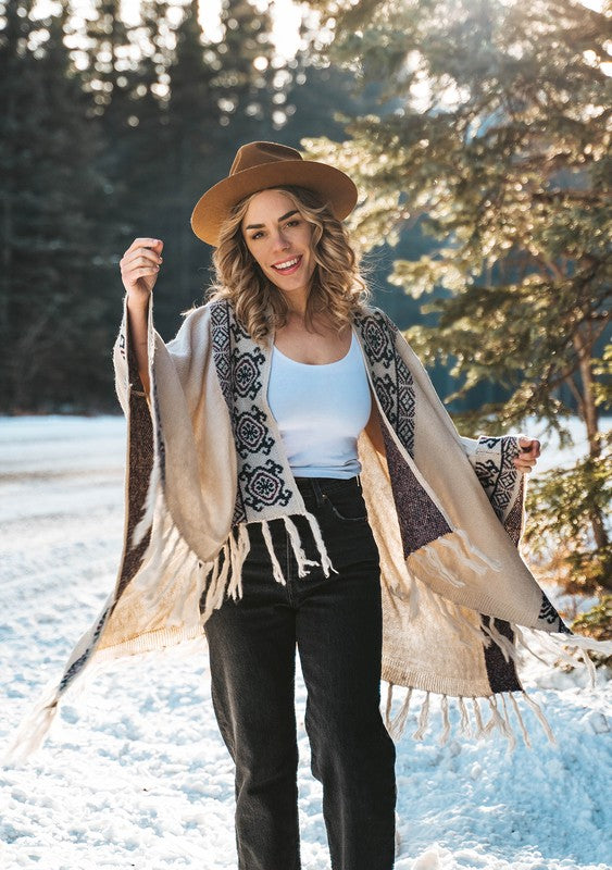 Upgrade your wardrobe with The Margaux Boho Fringe Shaw! This oversized shawl boasts a chic bohemian style and trendy fringe details.