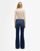 Fits like: Fitted through the hips and thighs. This mid rise denim has a wide, full-length leg and a subtle flare for a long, lean silhouette.