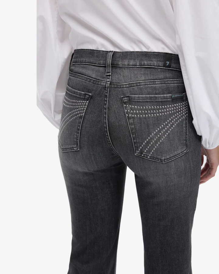 - Studded signature 7 back pocket detailing