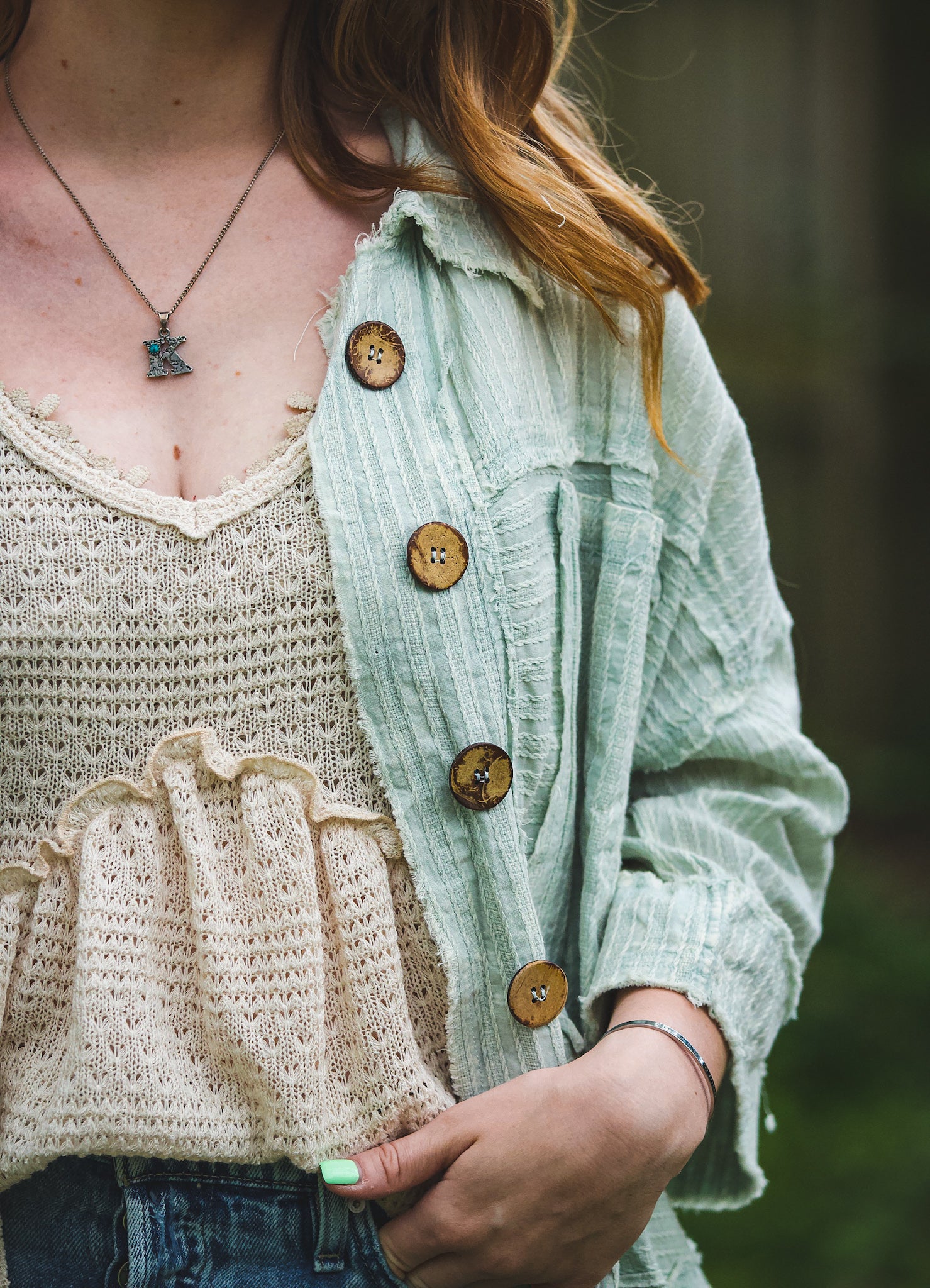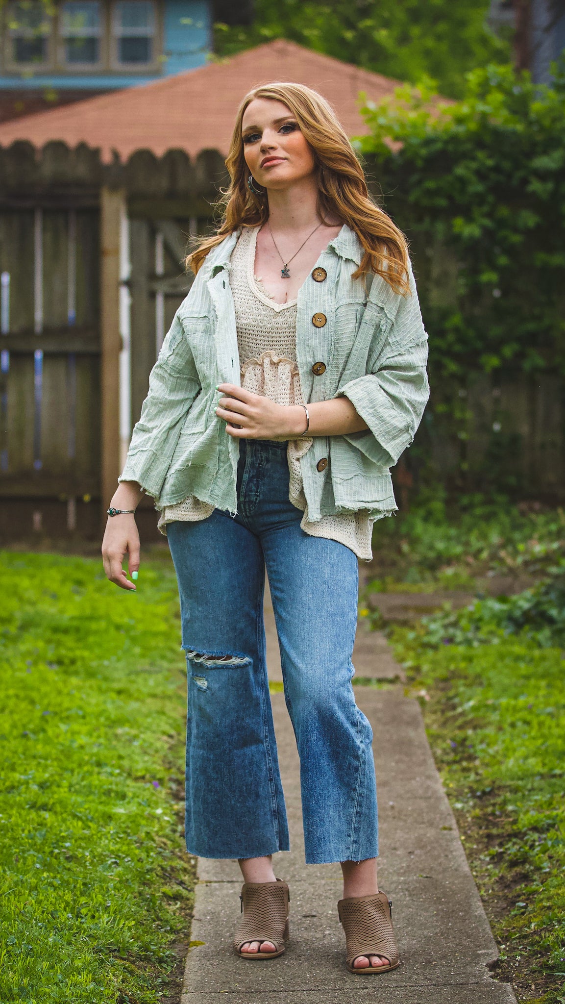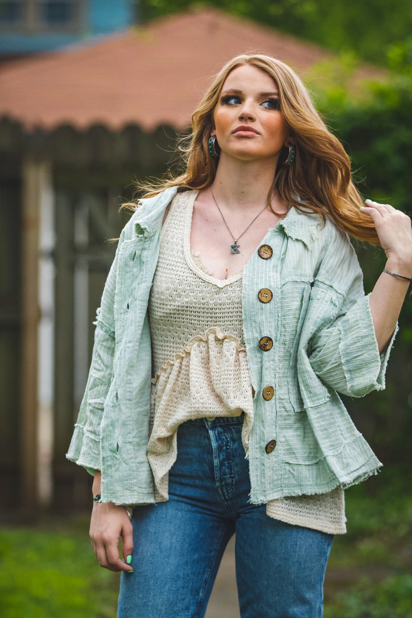 Introducing the Fella Kat Washed Wooden Button Shacket! Get the best of both worlds with a relaxed fit and oversized wooden buttons for that extra touch of style. Step up your fashion game with this unique and playful piece.