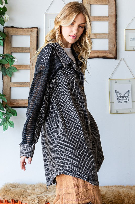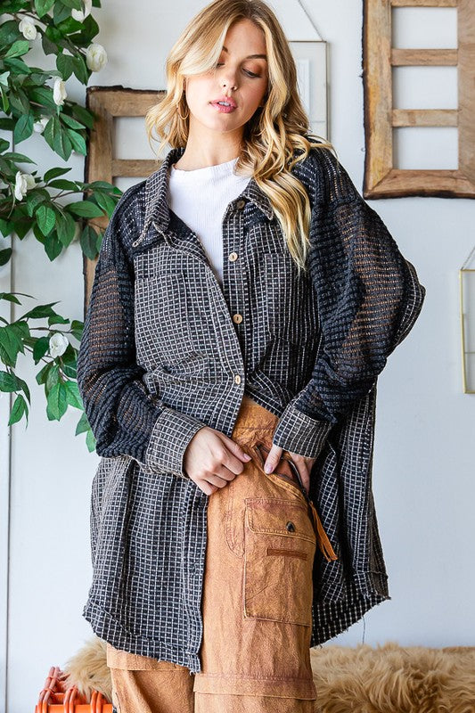 Stay cool and stylish with The Goodyear Grid Openweave Over Shirt. This mineral washed shirt offers a relaxed fit that is true to size. Perfect for any casual occasion, it's the ultimate combination of comfort and fashion.