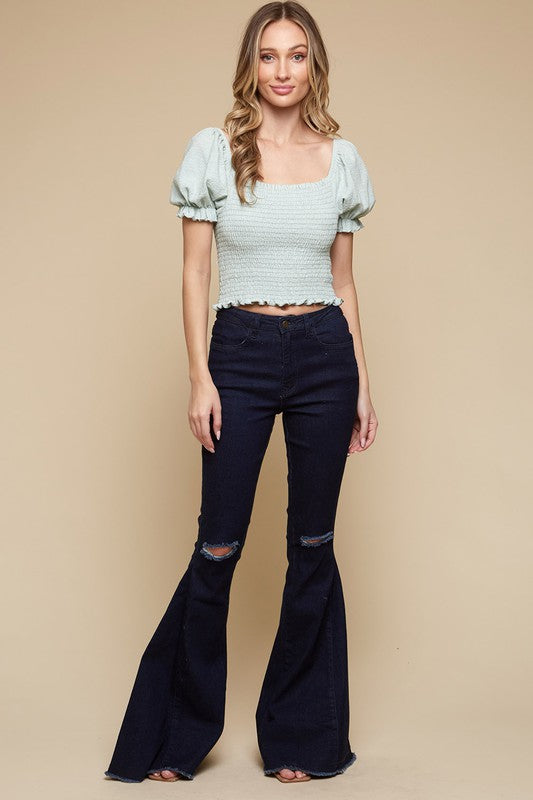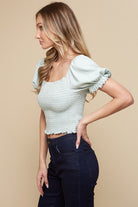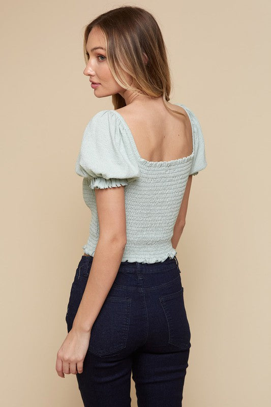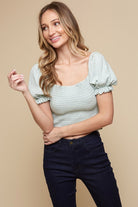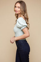 The Unbroken Smocked Bubble Sleeve Top features a trendy square neckline and smocked bodice and bubble sleeves that add volume and texture to any outfit. Made with premium fabrics, this top is both stylish and comfortable, making it the perfect addition to your wardrobe.