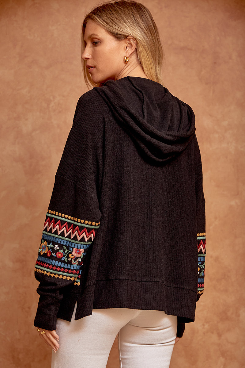 The Nova Kat Embroidered LUXE Ribbed Hoodie in Black