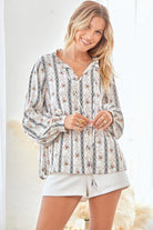 Introducing the Jemima Kat Drop Shoulder Flounce Sleeve Top. With its flounce sleeves and drop shoulder design, this top combines style and comfort for a versatile everyday look. The split neck detail adds a touch of elegance. A must-have for any fashion-forward wardrobe.