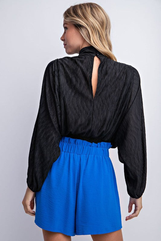 Allendaire Mock Neck Crinkle Top
