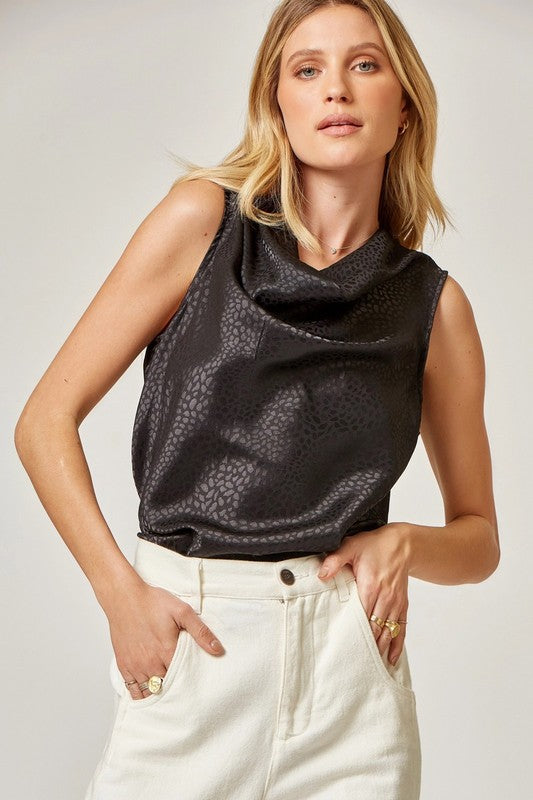 This stylish top features a bold leopard print design and a sophisticated high neck. The sleeveless cut provides a comfortable and flattering fit, making it the perfect choice for any occasion. Elevate your wardrobe with this must-have piece.