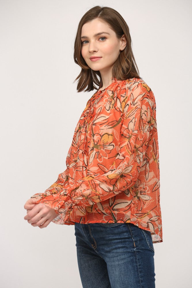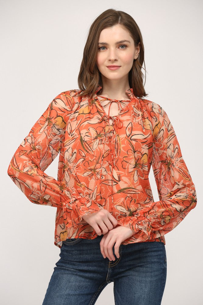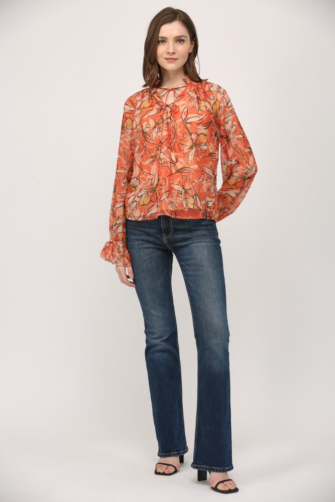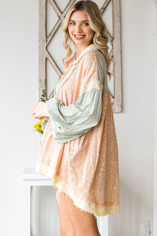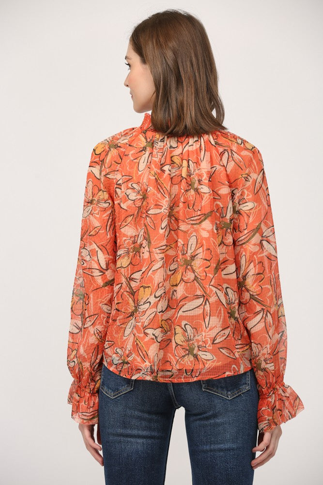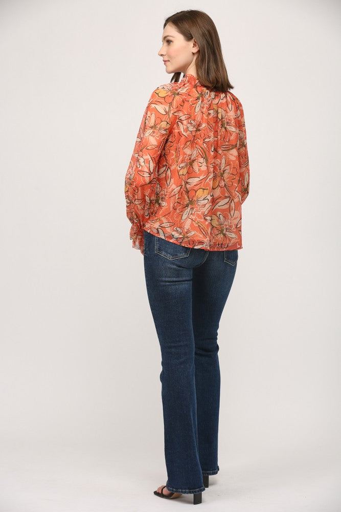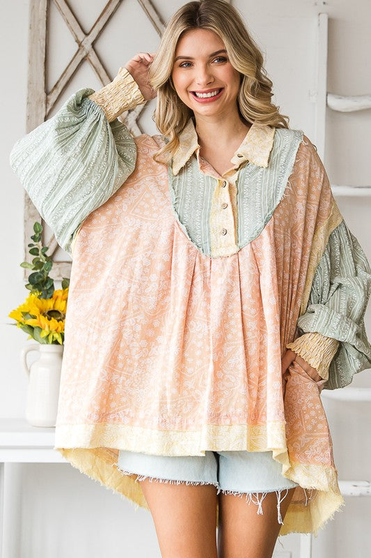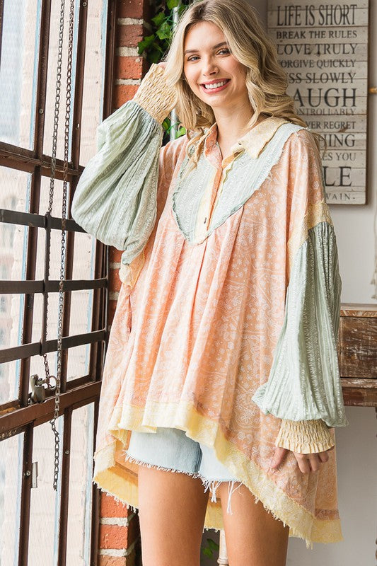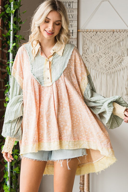 The Iris Floral Lace Contrast Panel Balloon Sleeve Top