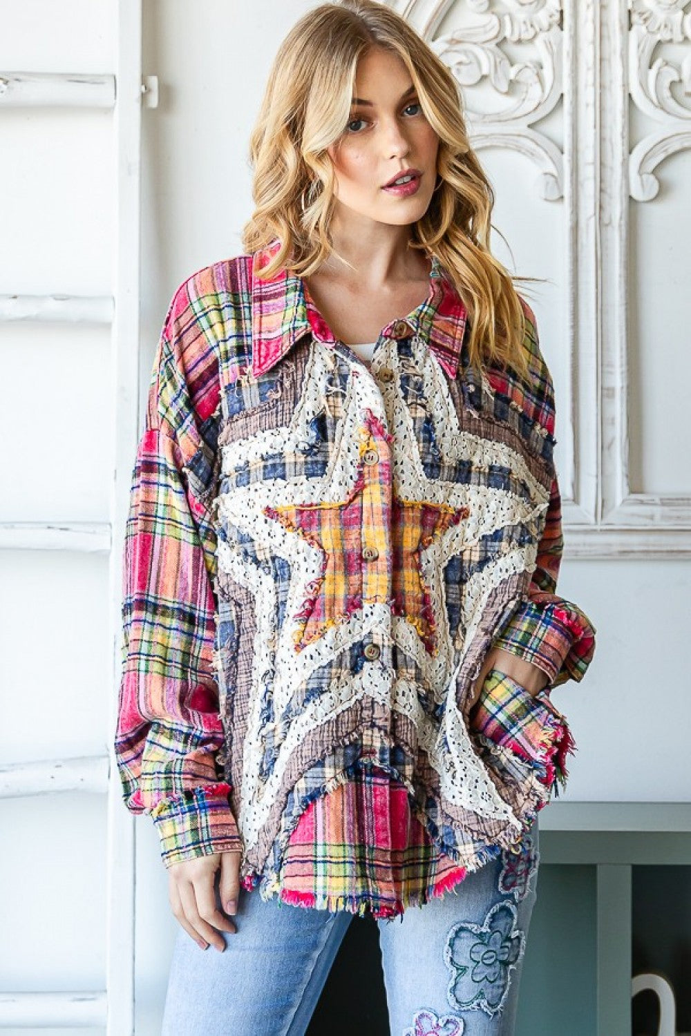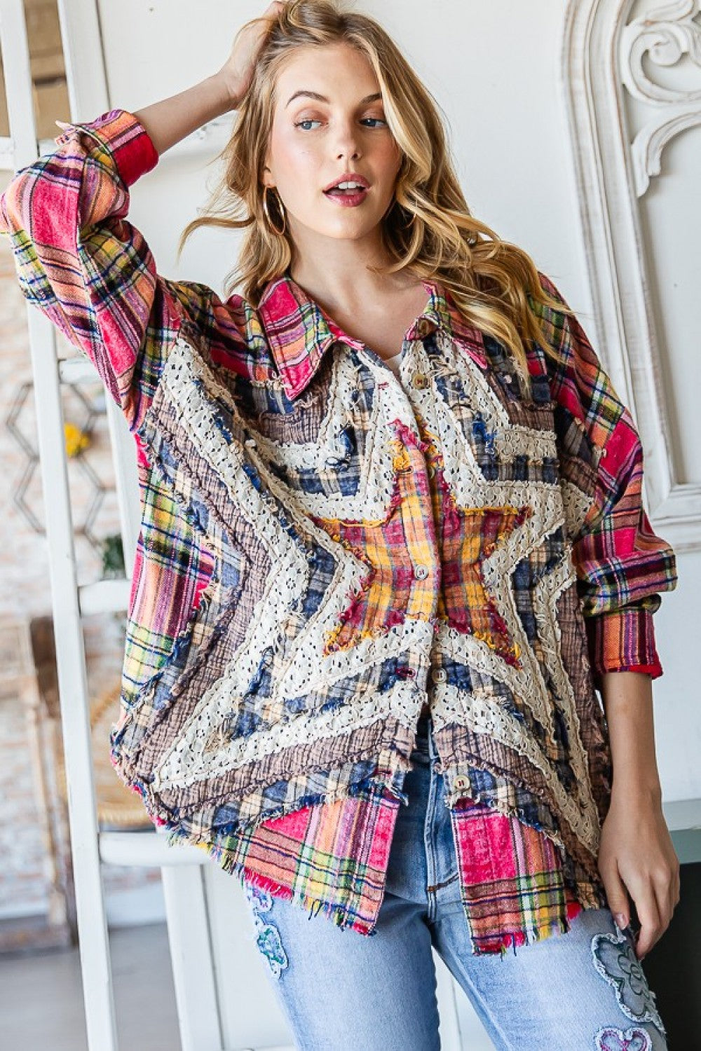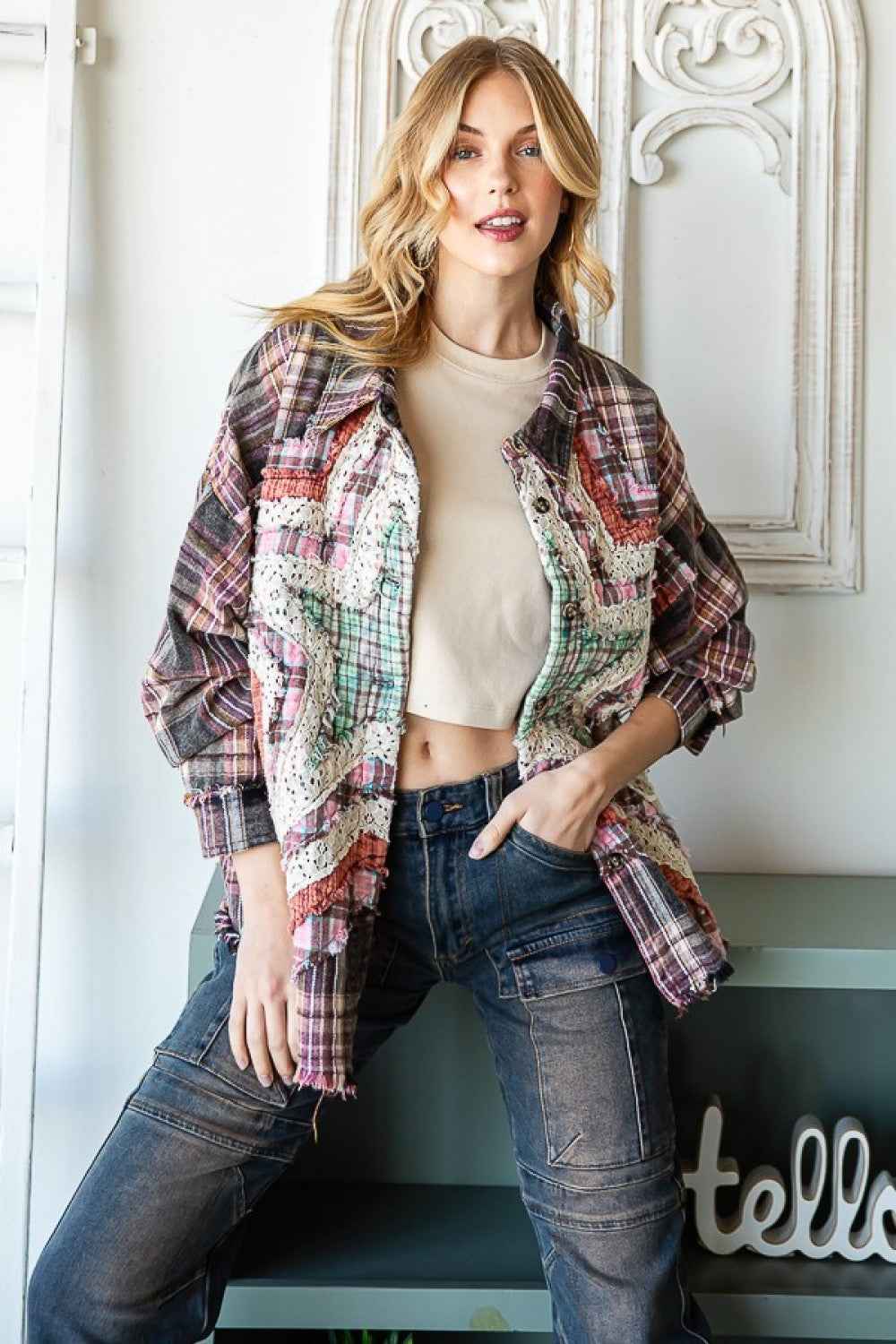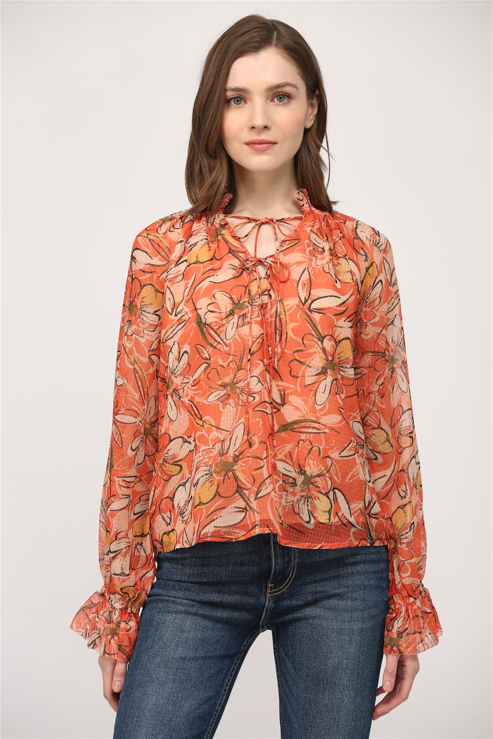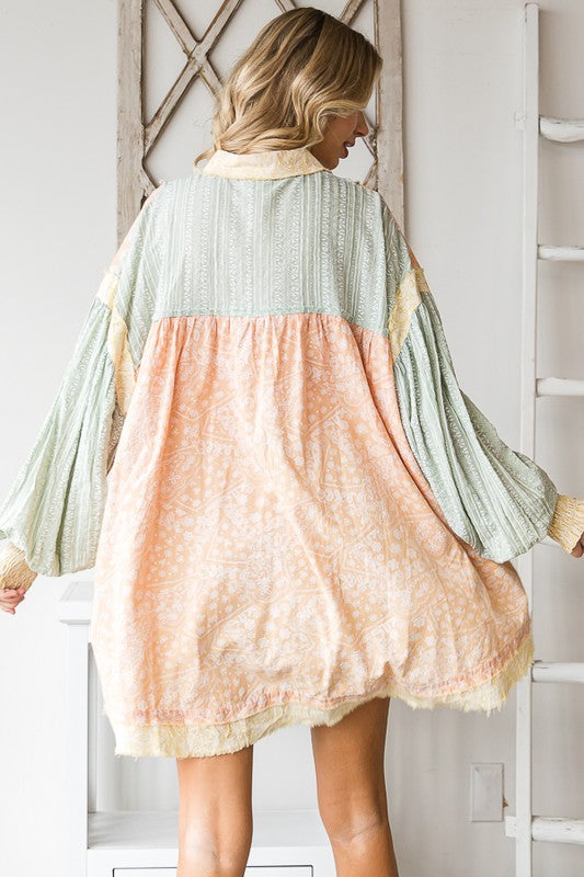 The Iris Floral Lace Contrast Panel Balloon Sleeve Top