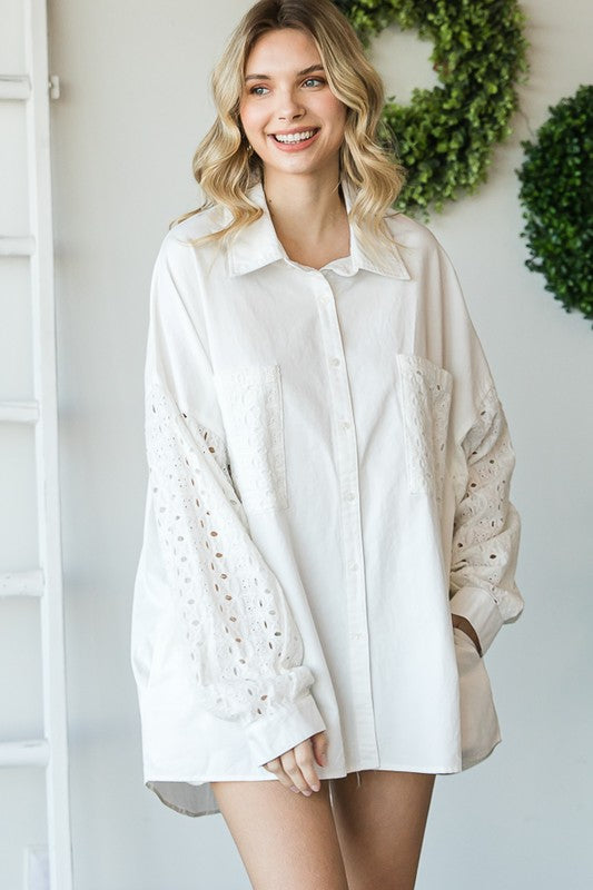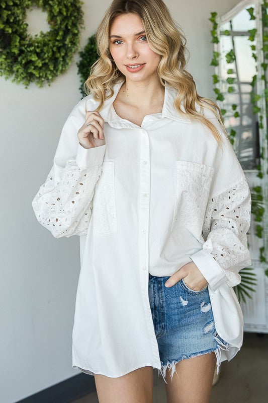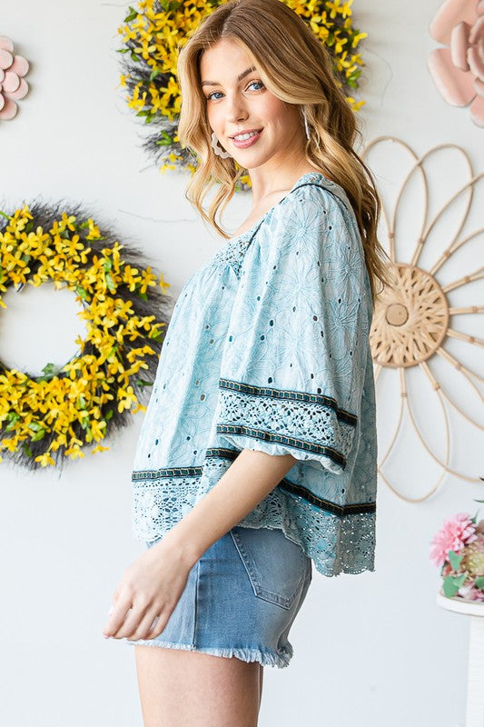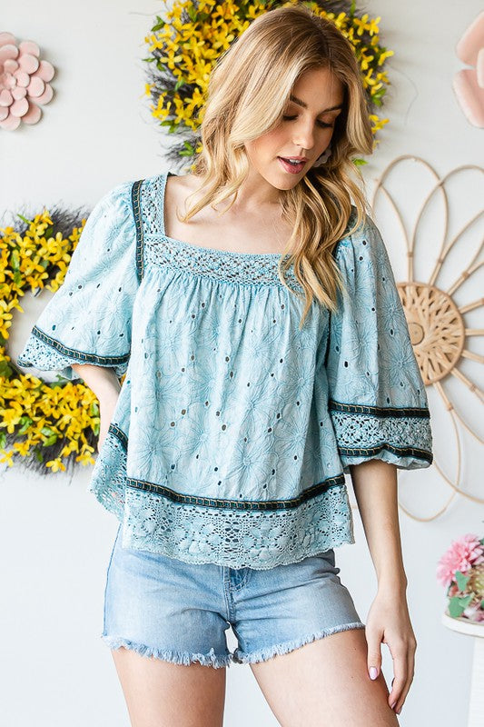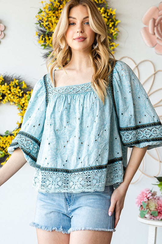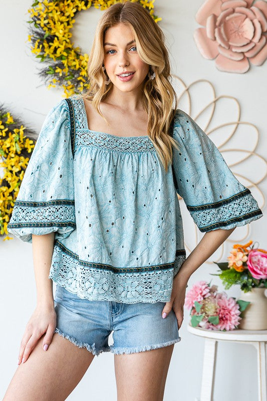 The Marx Cotton Gauze Lace Balloon Sleeve Top