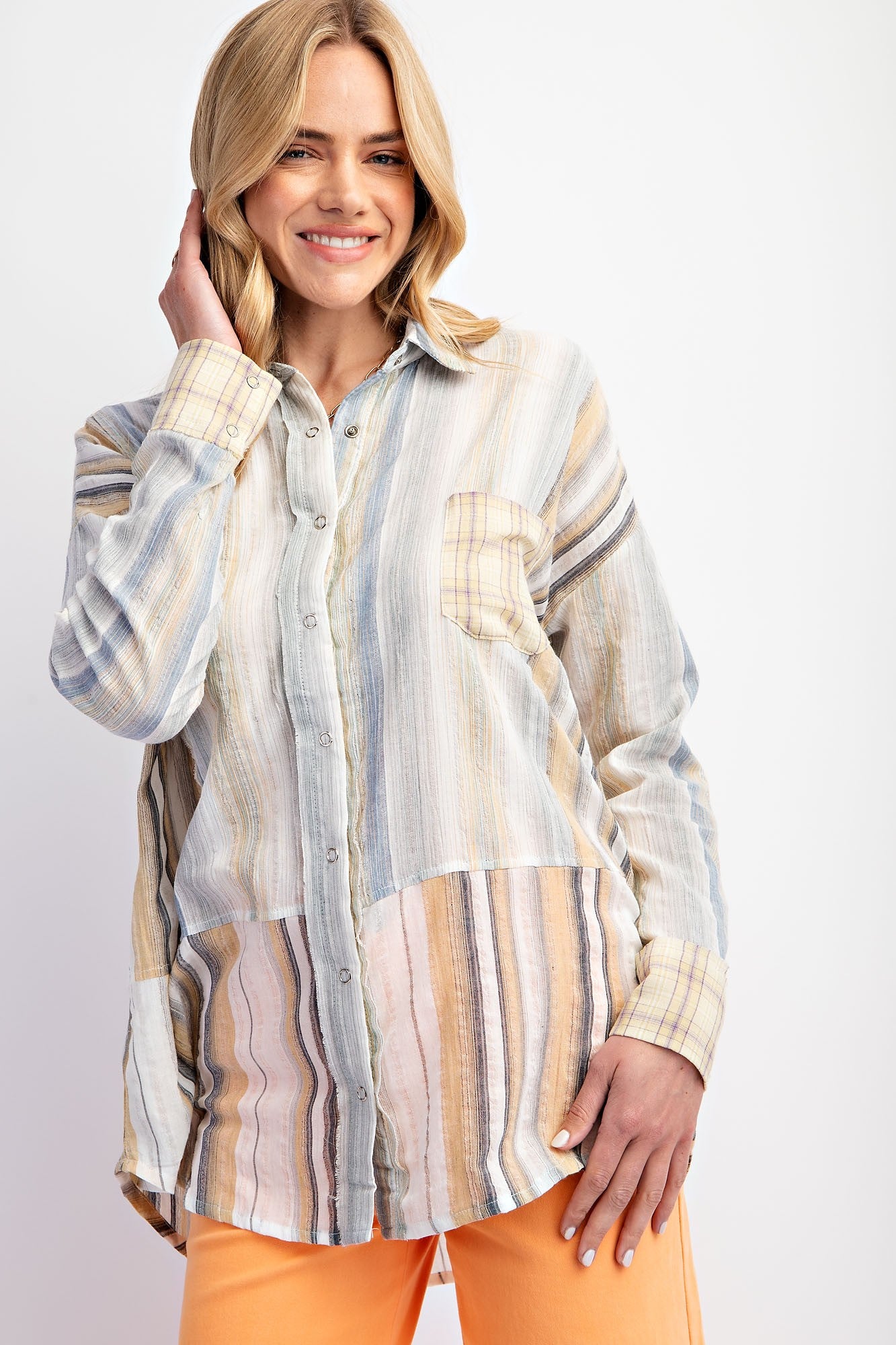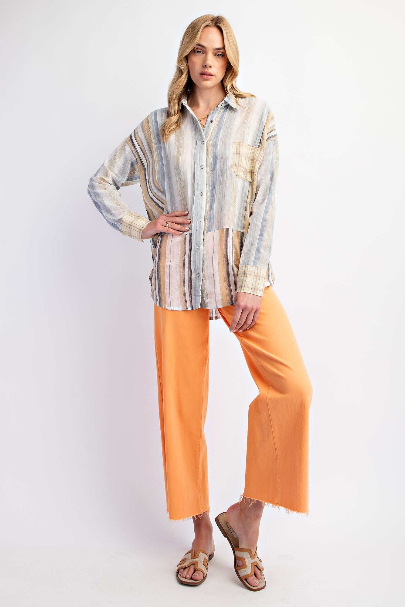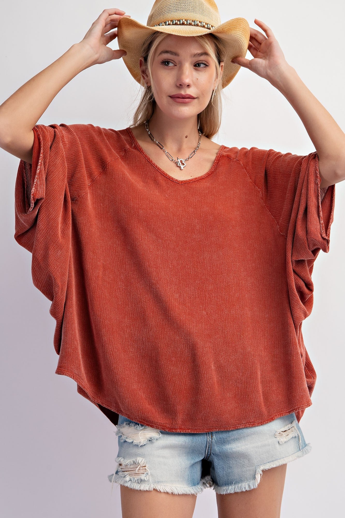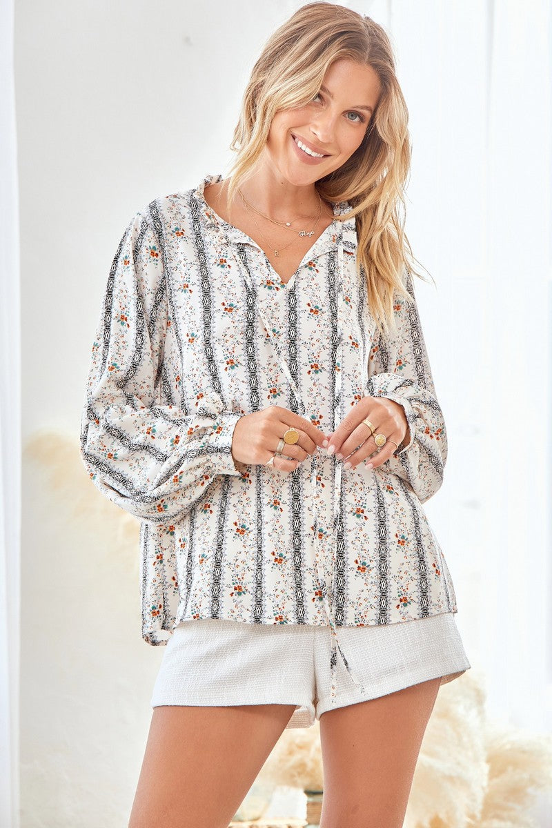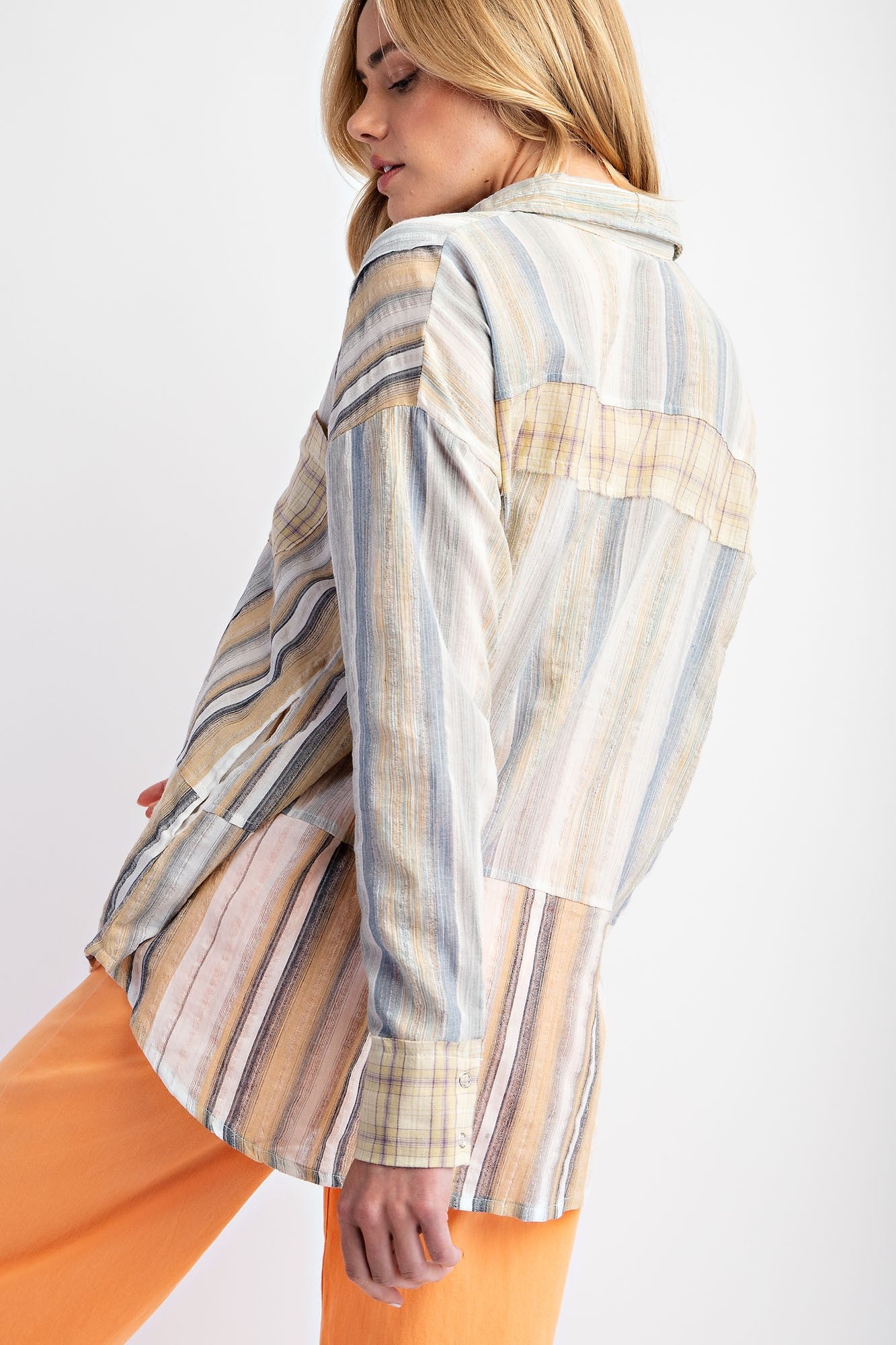 The Wren Kat Split Neck Rust Stripe Embroidered Top Curve +