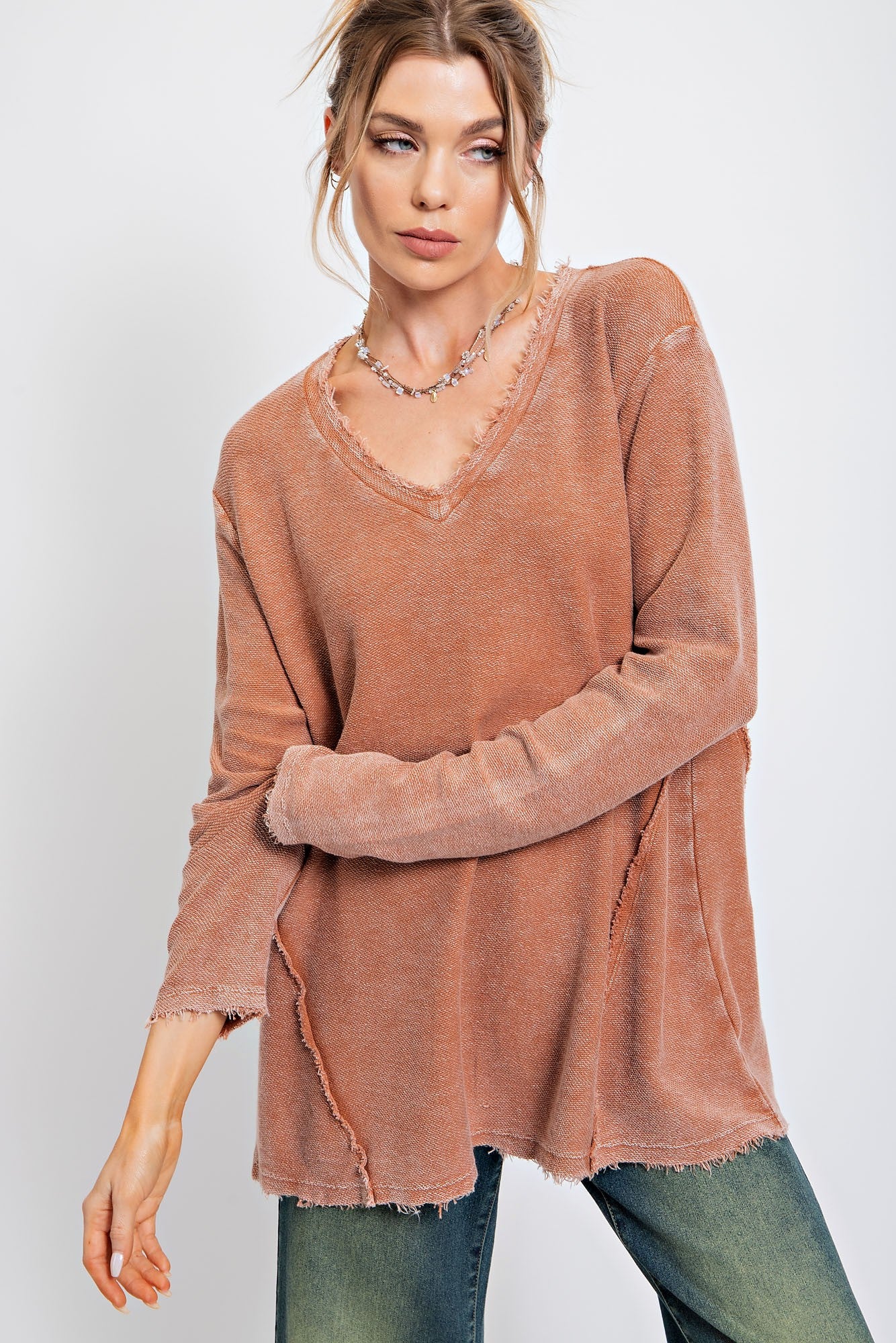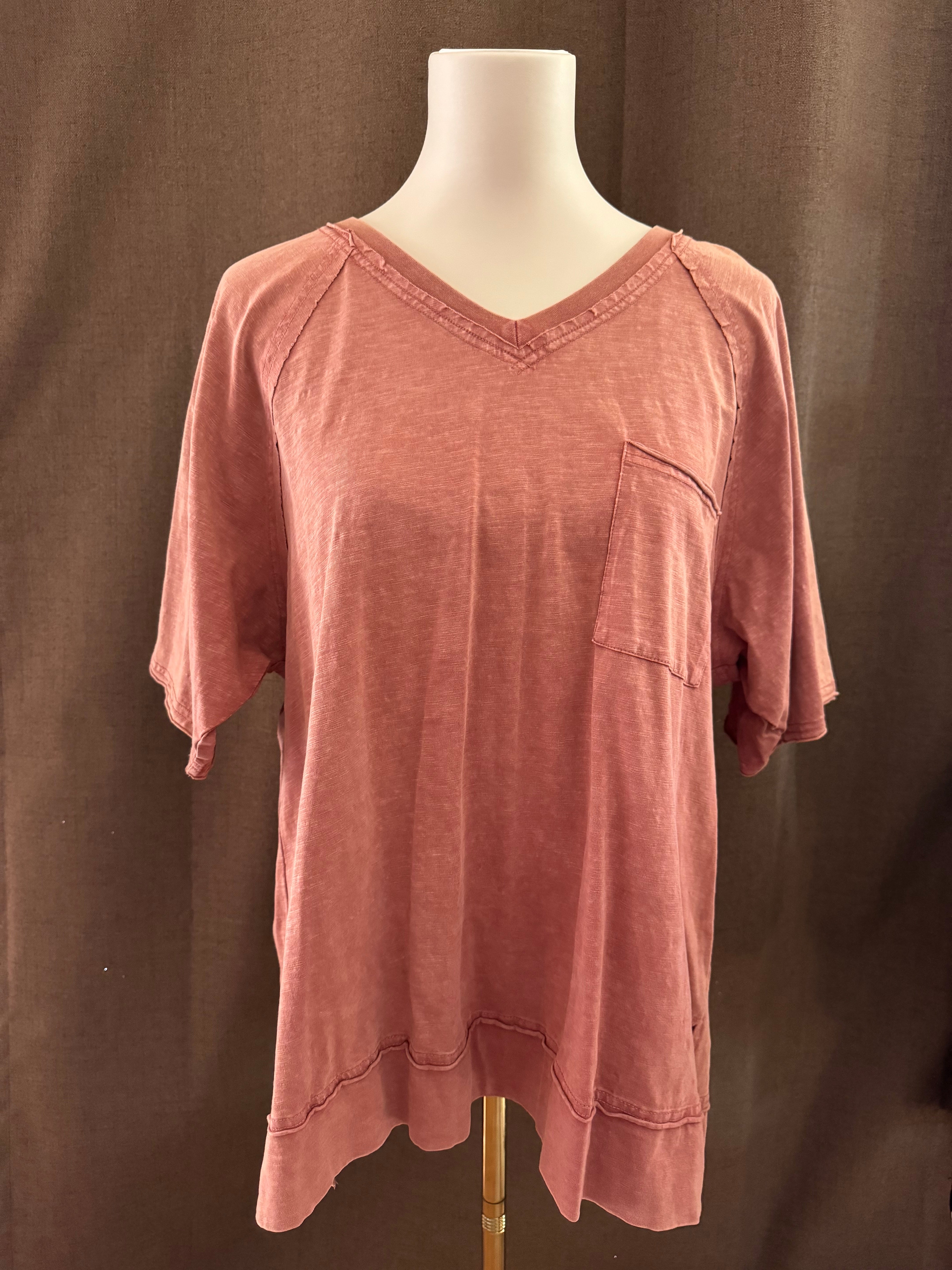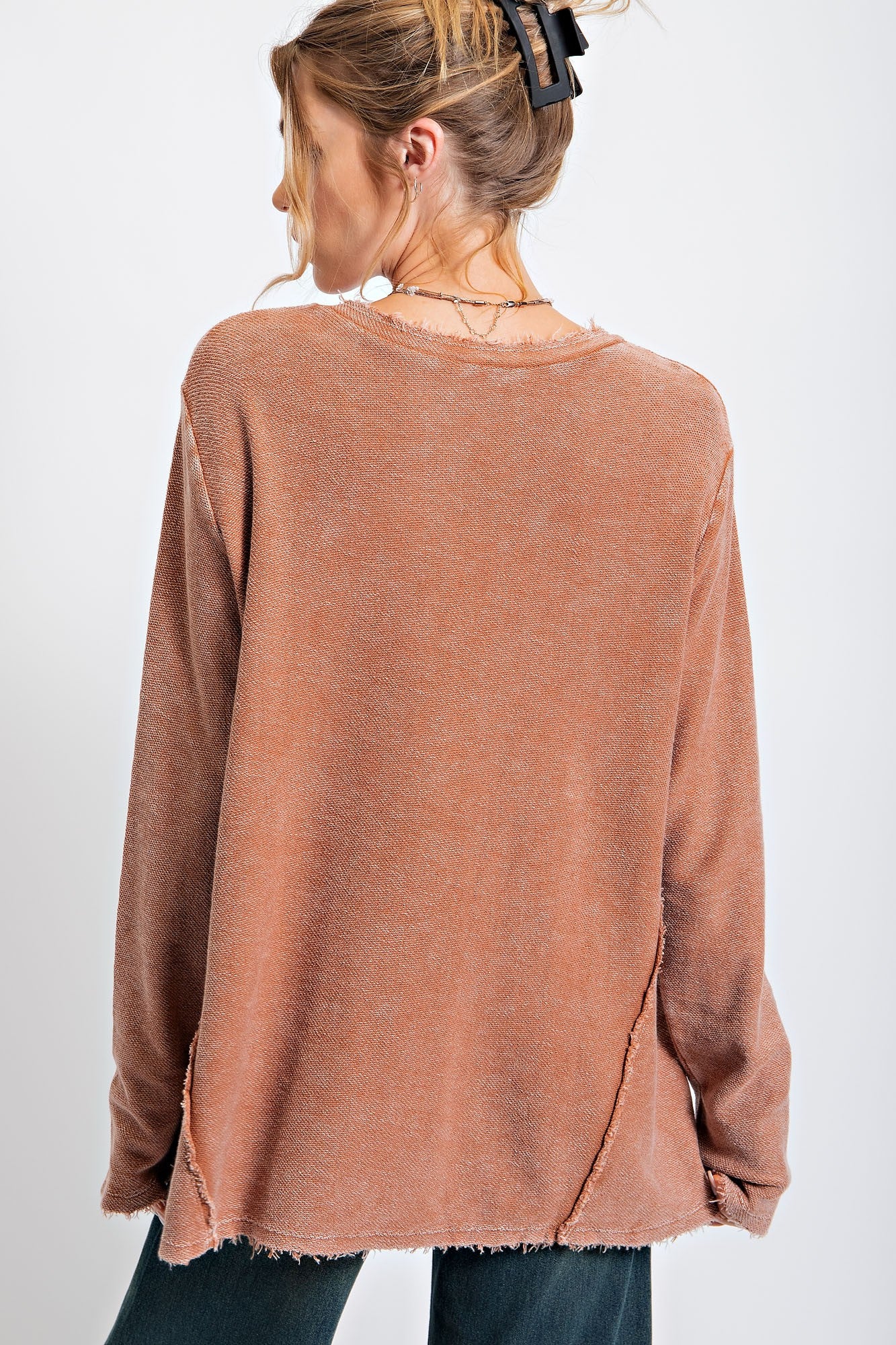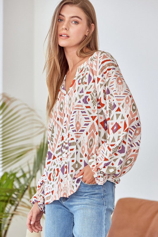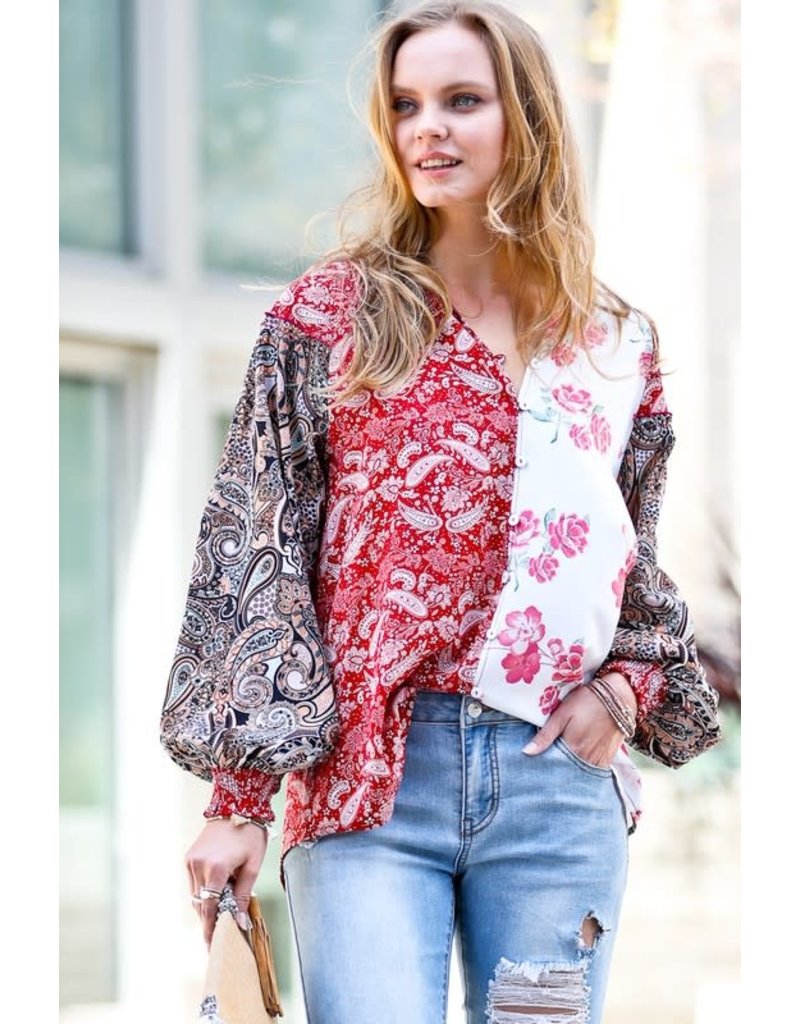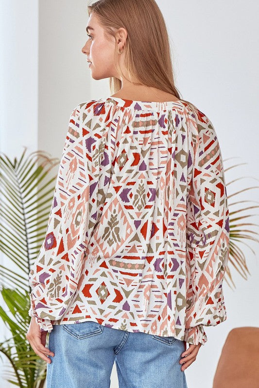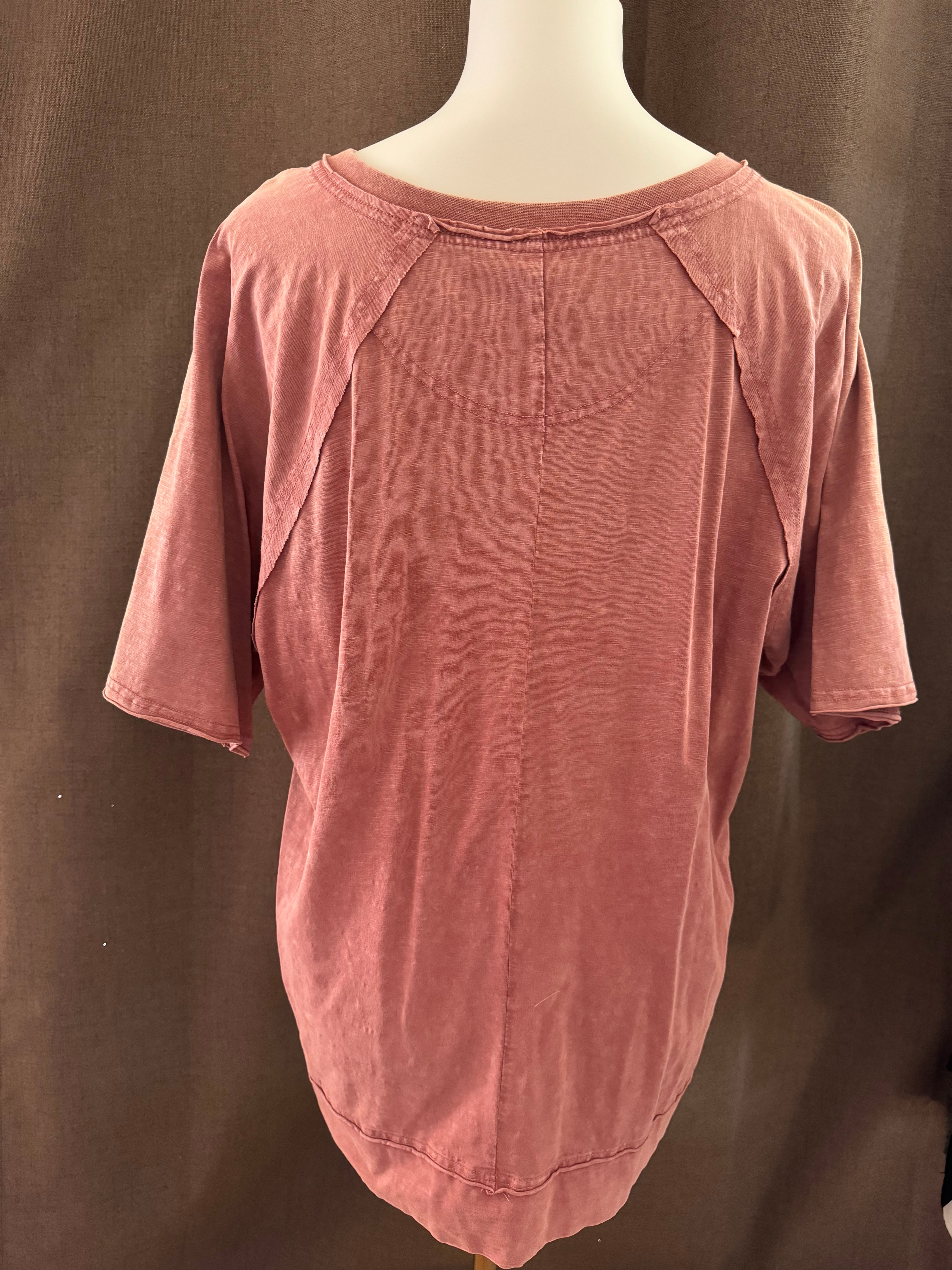 The Wren Kat Split Neck Rust Stripe Embroidered Top Curve +