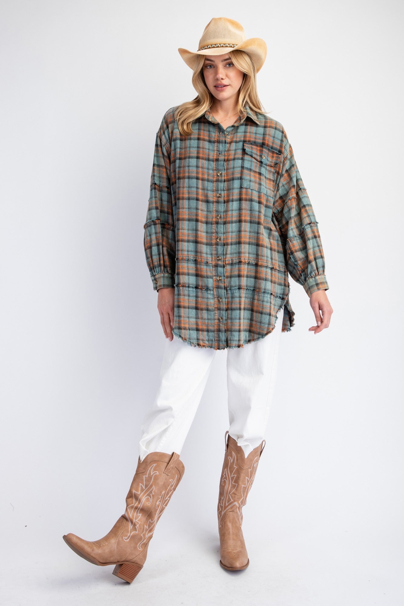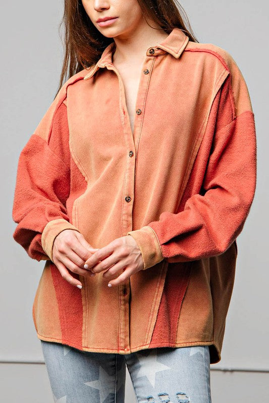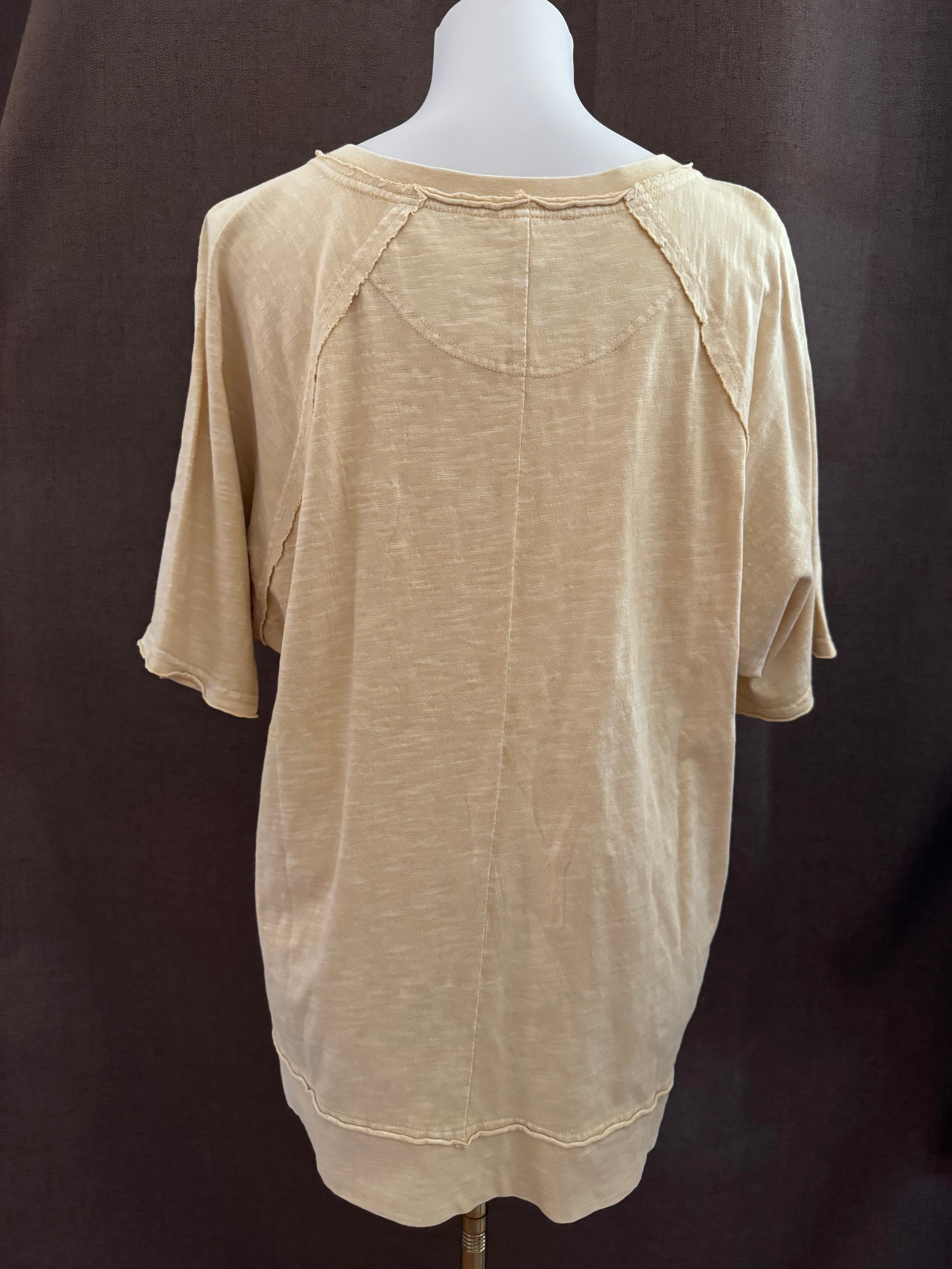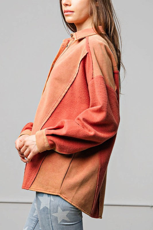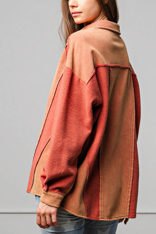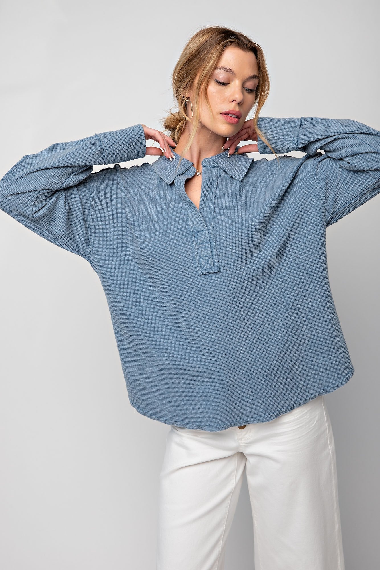 The Wren Kat Split Neck Rust Stripe Embroidered Top Curve +