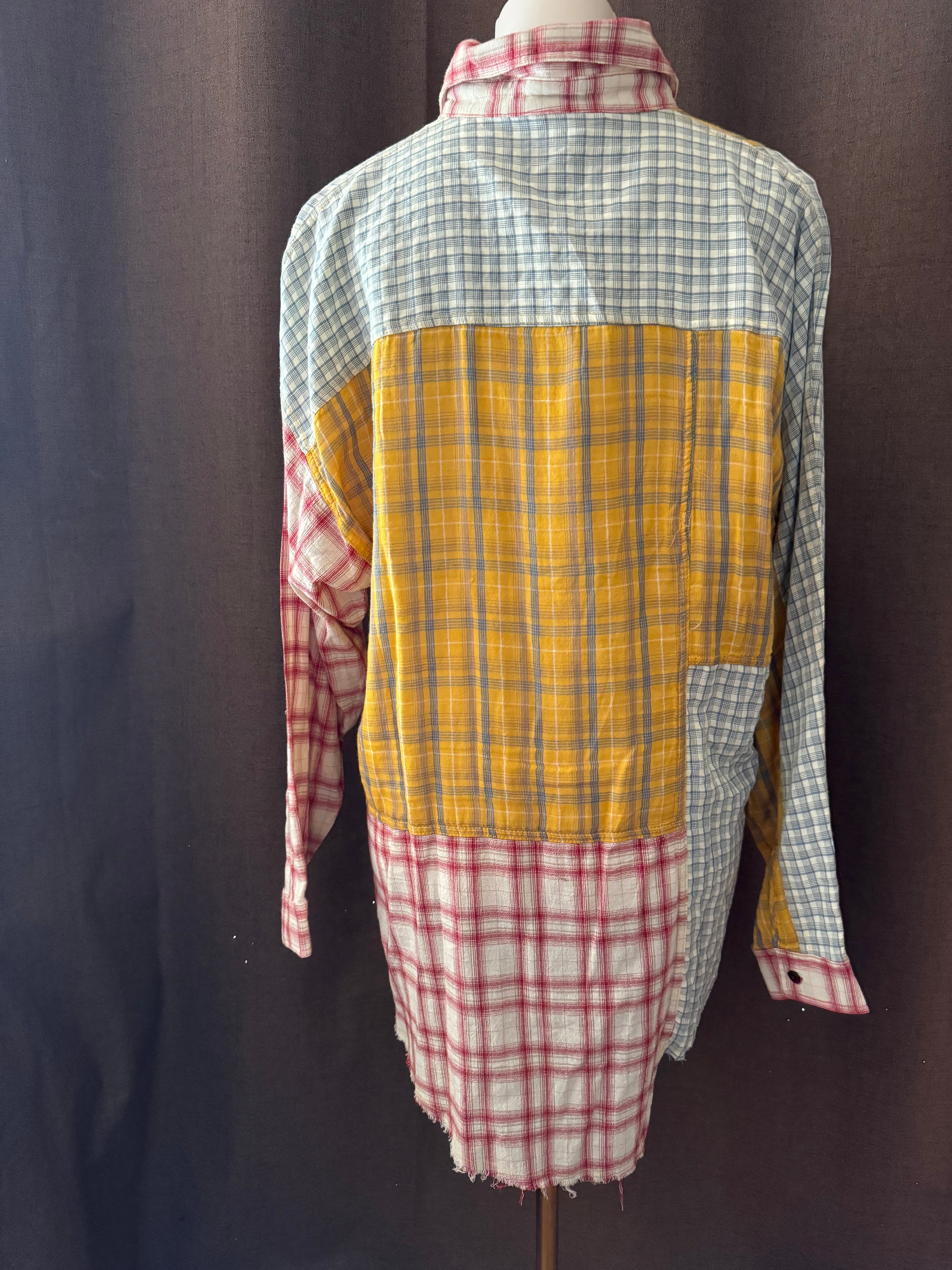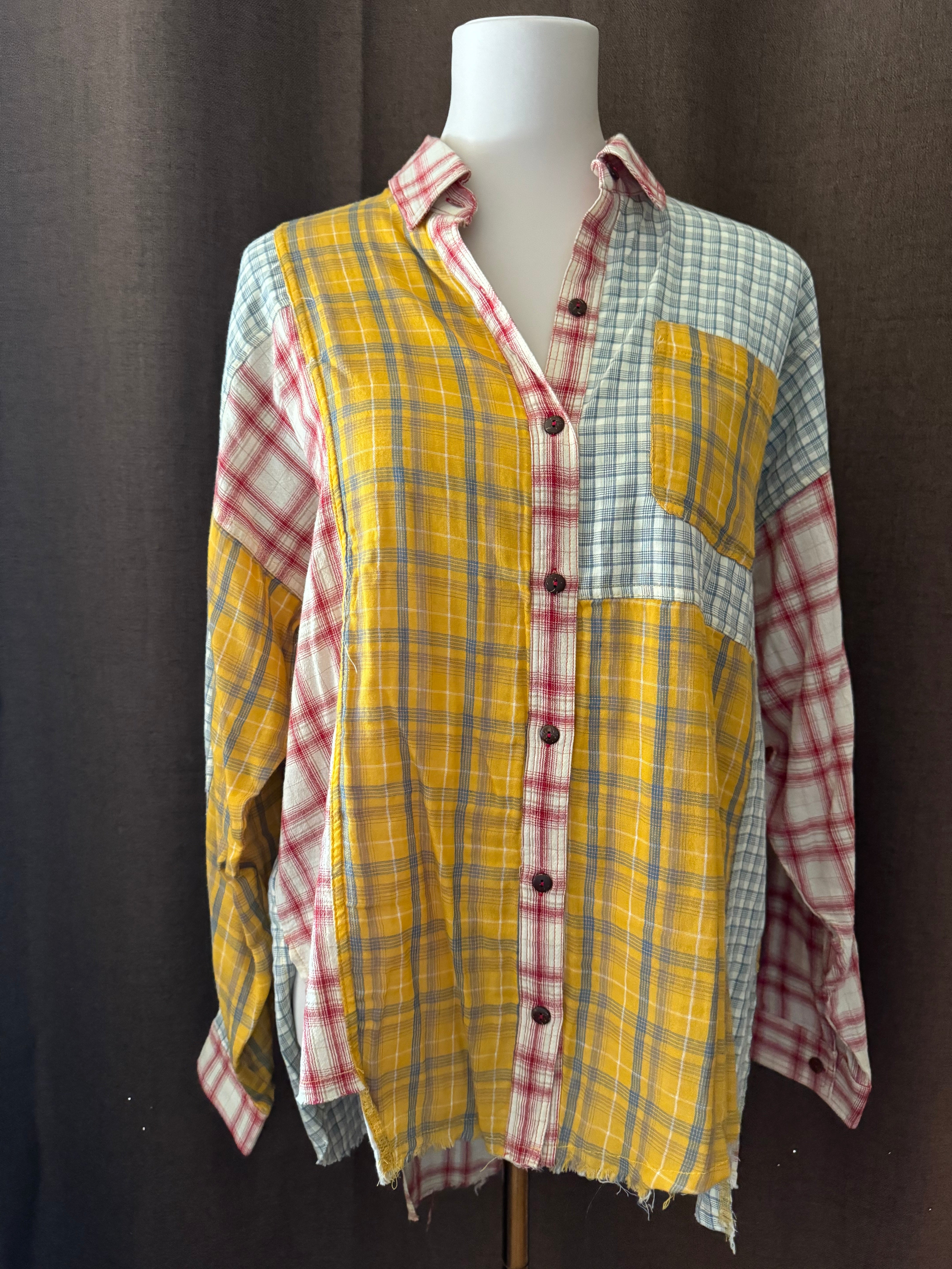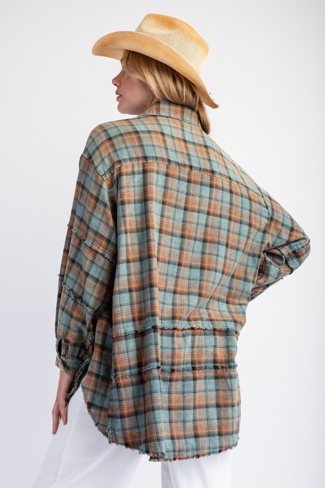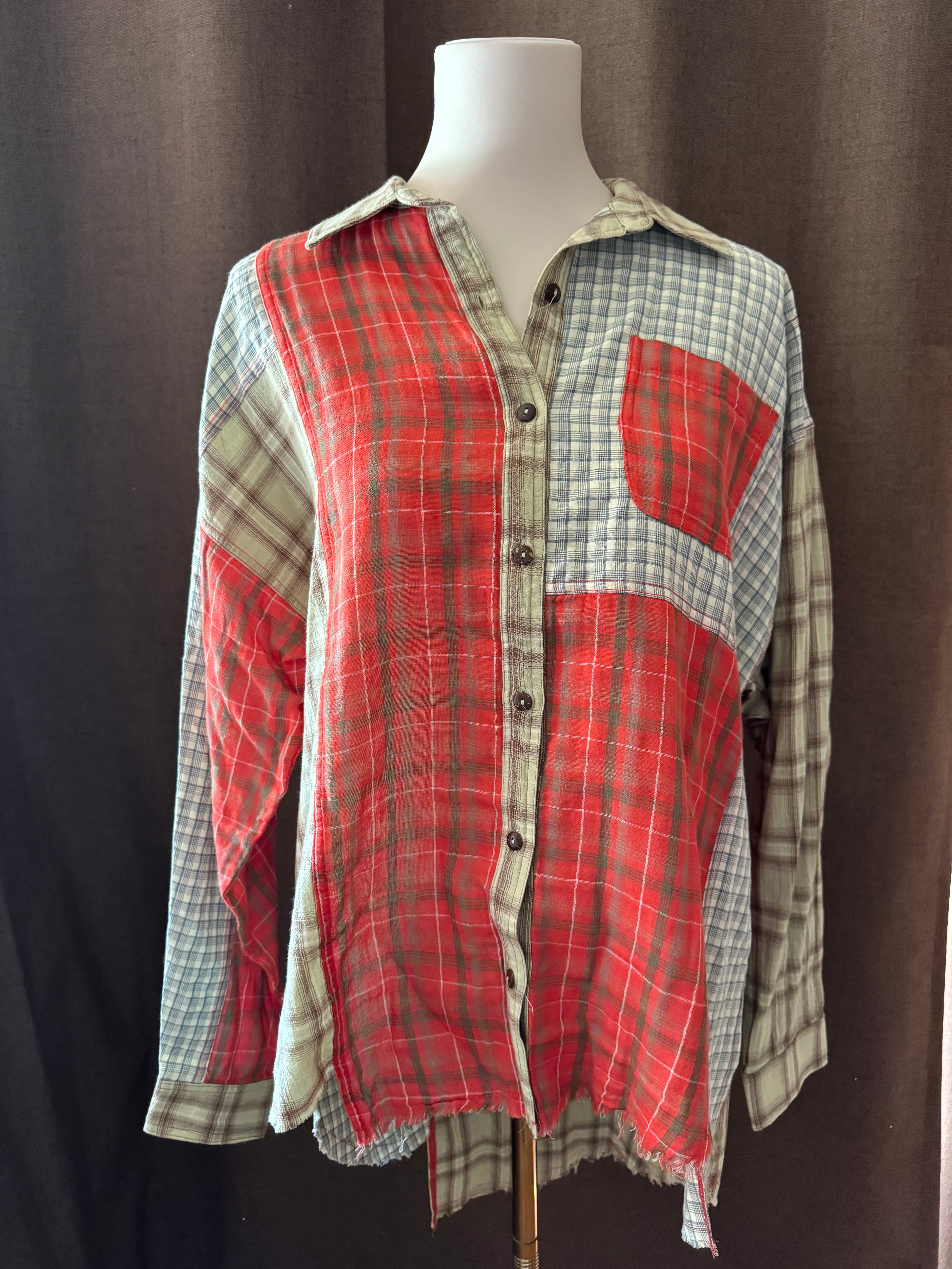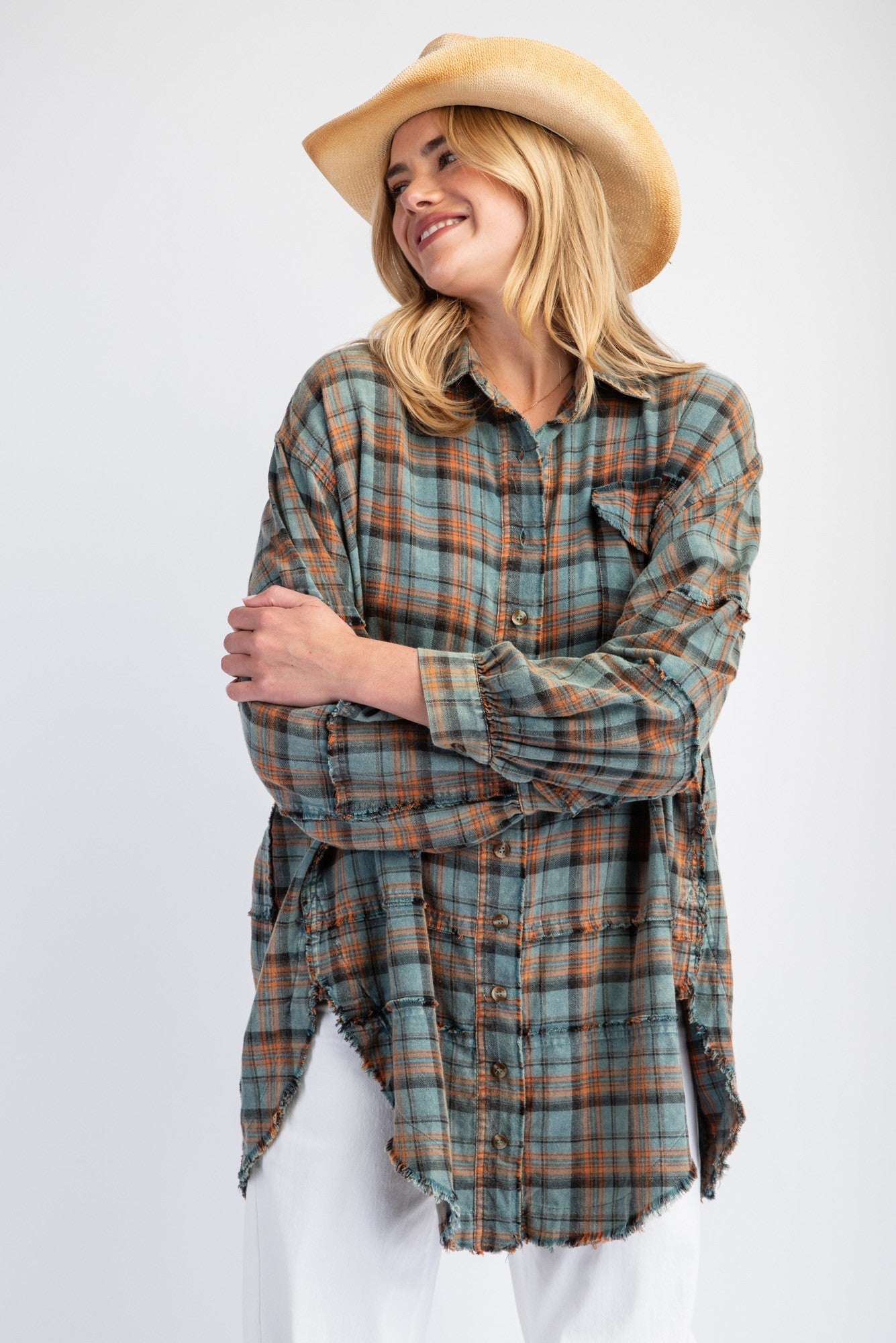 The Wren Kat Split Neck Rust Stripe Embroidered Top Curve +
