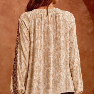 The Ruby Kat Taupe Embroidered Full Sleeve Blouse