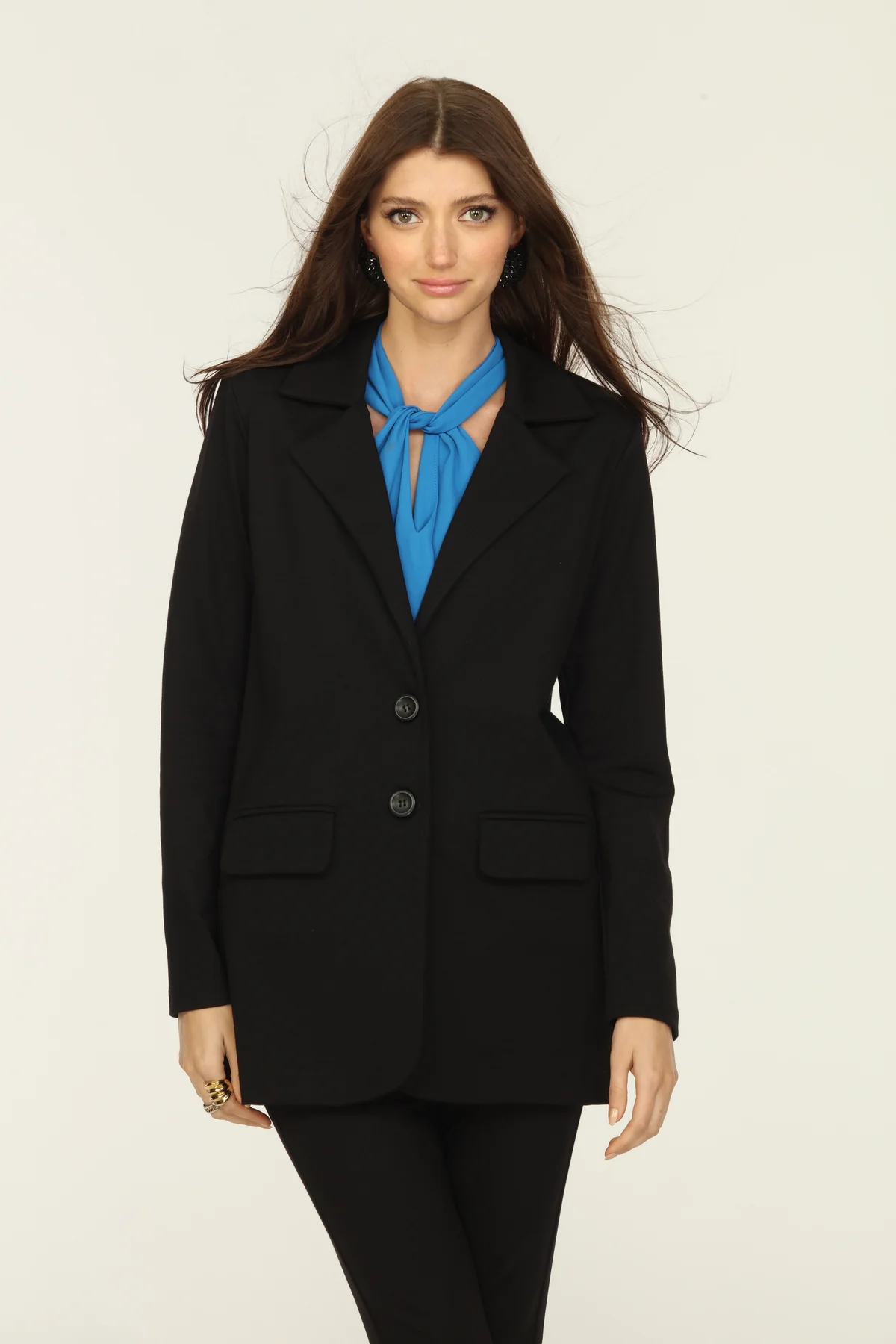 Flaunt your professional style with the Boulder Kat Boyfriend Blazer. Its boyfriend fit adds a touch of relaxed sophistication, while the two buttons on the front provide a polished look. The black color makes it versatile for any occasion. Elevate your wardrobe with this must-have blazer.