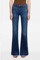Fits like: Fitted through the hips and thighs. This mid rise denim has a wide, full-length leg and a subtle flare for a long, lean silhouette.