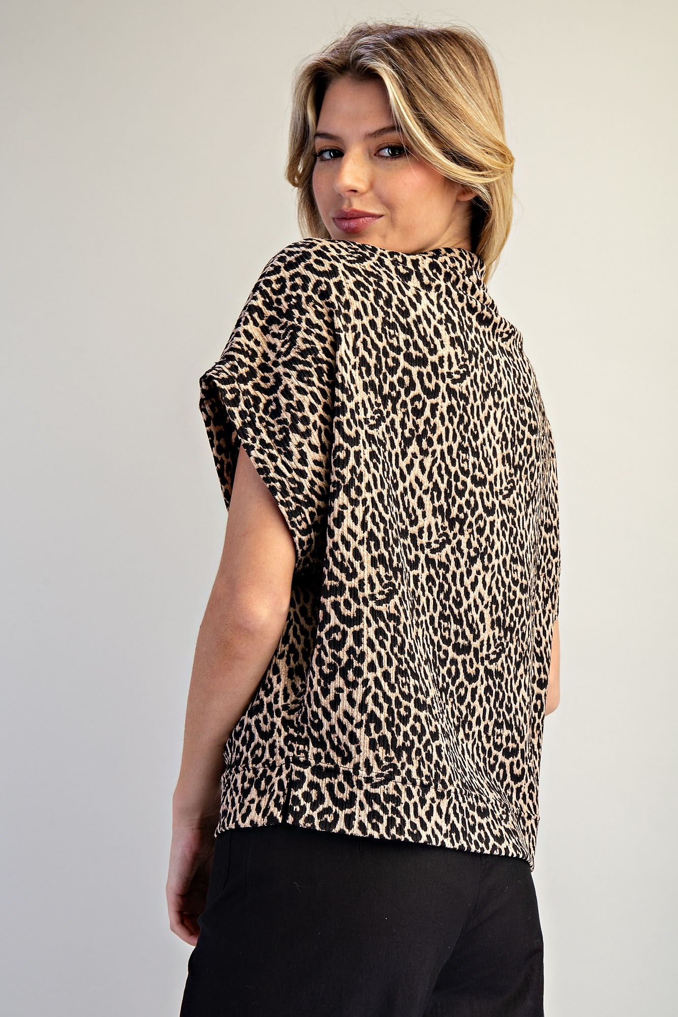 Lizzi Kat Leopard Print Mock Neck Dolman Sleeve Top