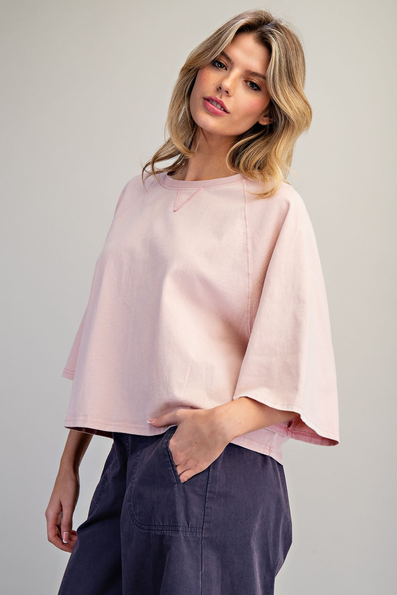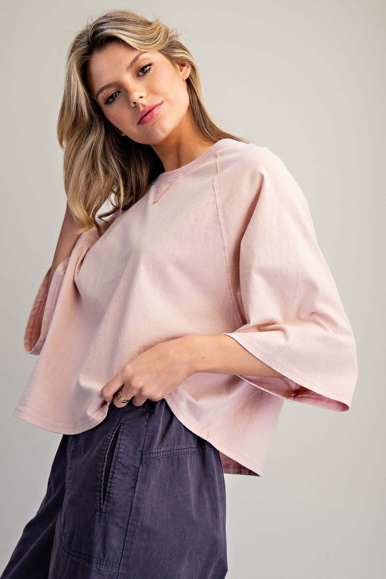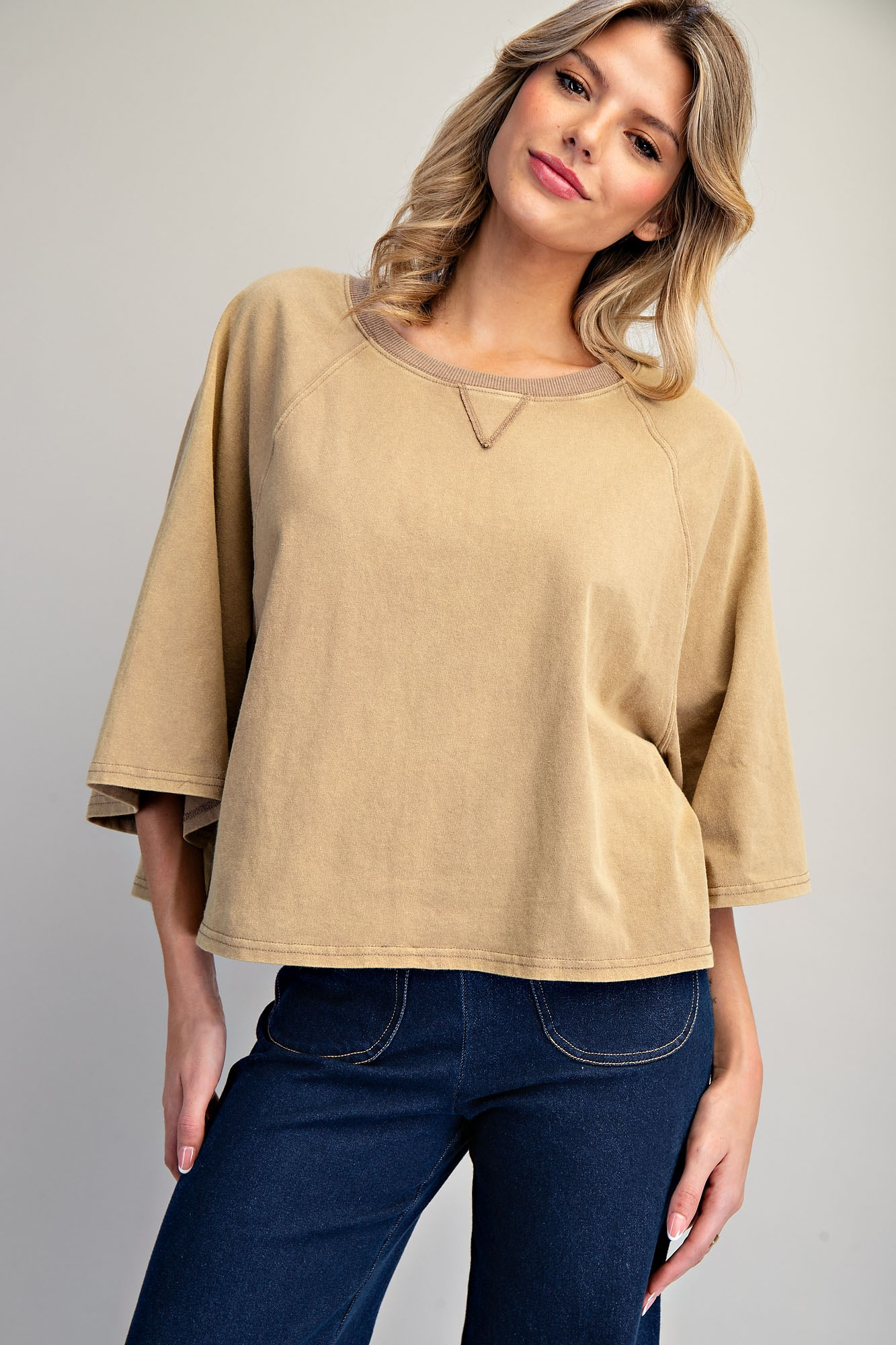 Tami Kat Mineral Washed Round Neck Half Sleeve Top