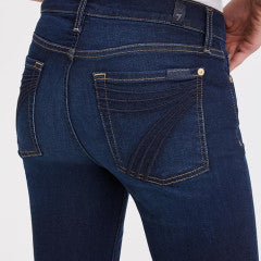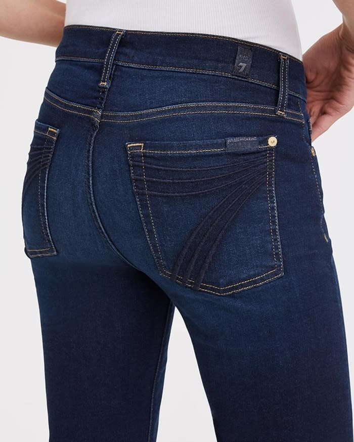 Offered in a dark blue wash complete with natural whiskering and a gentle fade down the thigh.