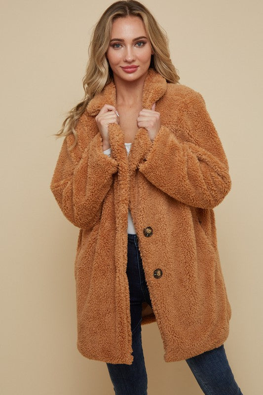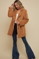 The Evelyn Dutton's Daughter Teddy Coat is a must-have for any fashion-forward individual. This oversized coat is perfect for staying warm and stylish during the colder months. With options in both rust and cream, you can easily pair this coat with any outfit. Elevate your winter wardrobe with this cozy and versatile piece.
